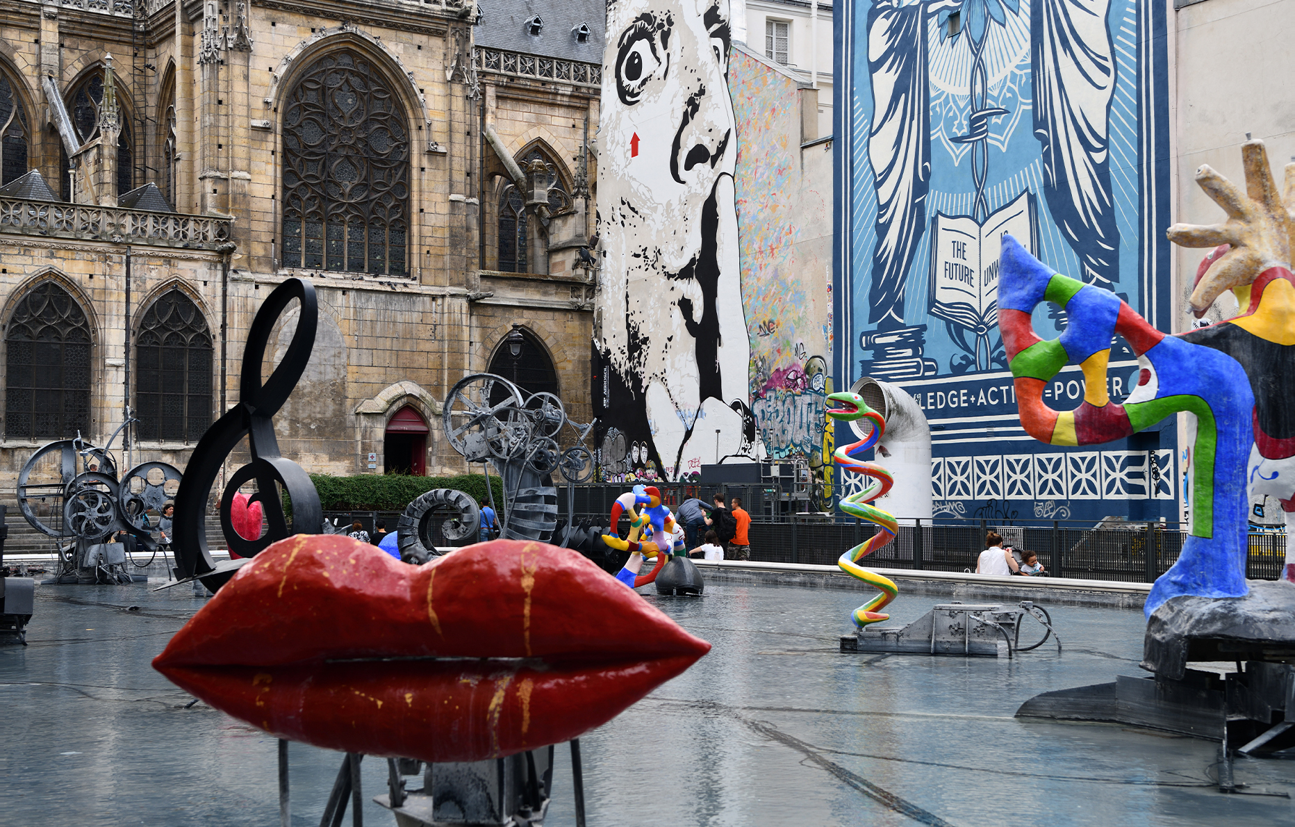 Datant de la même époque et voisine du Centre Georges-Pompidou, la Fontaine Stravinsky de Jean Tinguely et Niki de Saint Phalle (1983) est une sculpture-fontaine incontournable haute en couleur du quartier du Marais. Autre grand classique : Le Mur des je t’aime (inauguré en 2000). Une déclaration amoureuse de 40m carrés dans plus de 300 langues réalisée par Frédéric Baron et Claire Kito. Et perchée sur le square Jehan-Rictus, dans les hauteurs de Montmartre.