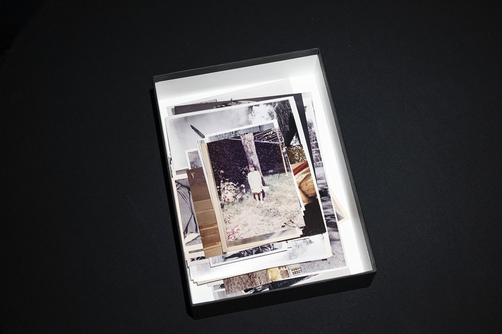 Au centre de la salle, une table basse drapée d’un tissu noir et clairsemée de coussins, avec une boîte en son centre qui s’apparente à une grande boîte de Pandore. Légués en héritage, les clichés qu’on y découvre sont d’une cruauté insondable. Des corps excisés immortalisés en gros plan sur papier glacé – alors utilisés en guise de carte postale par des prochesde Verena Paravel. Entre deux chairs mutilées, se dévoilent des photographies de l’artiste enfant, issues d’un âge tendre passé dans divers pays d’Afrique. La juxtaposition des images souligne alors le pouvoir insidieux du regard colonial : celui de transformer la violence en banalité. La voix de Penda Diouf achève enfin de mettre des mots sur ce qui aurait pu ne rester que de l’ordre de l’image.