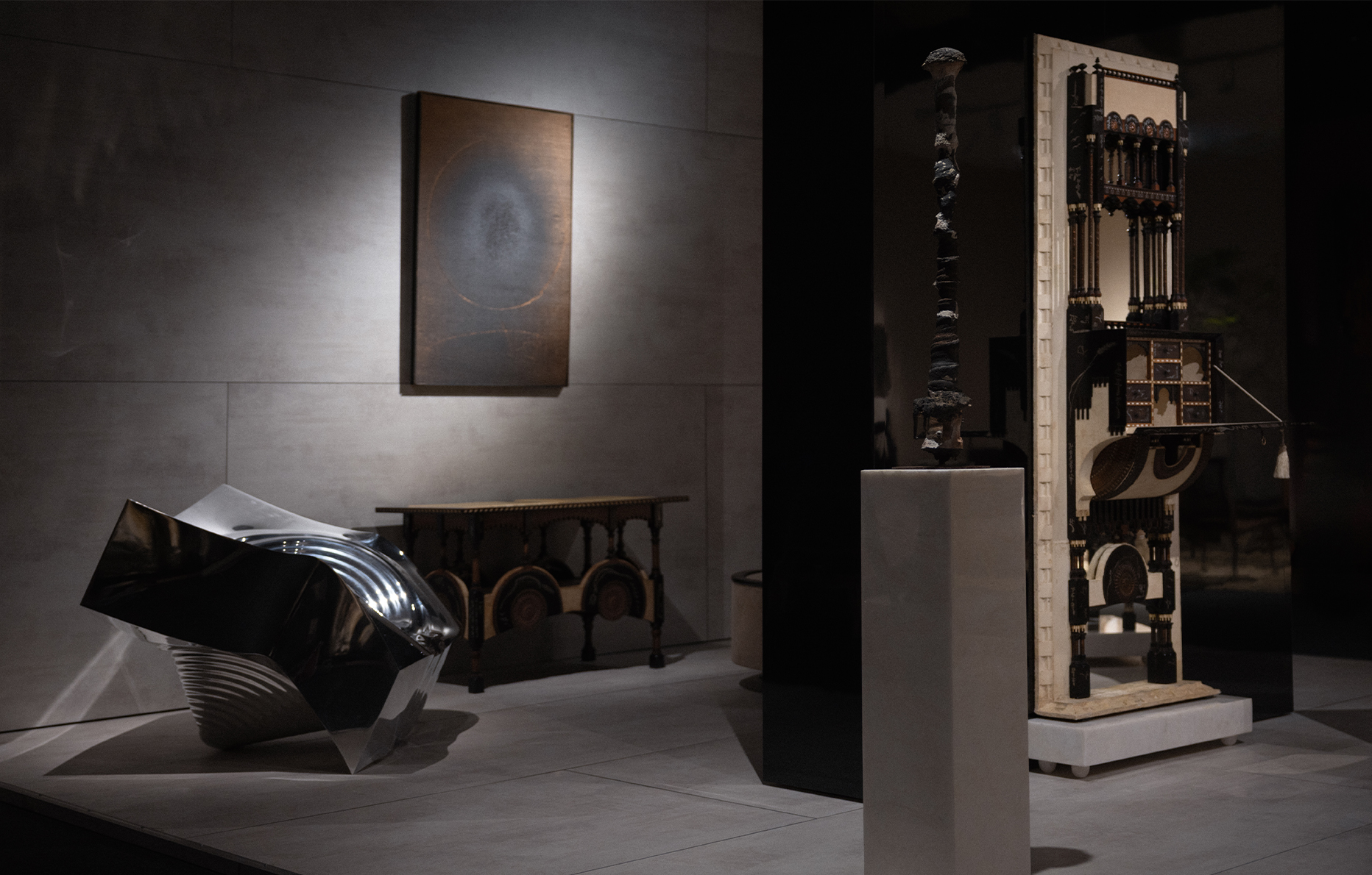 Autre grand gagnant du PAD London 2025 : la Sceners Gallery, lauréate du Prix du stand et primo-exposante au salon. Pour découvrir son espace, il faudra se faufiler jusqu’au milieu de l’allée partant sur la gauche, vers le stand A23. Plantée en plein milieu, la galerie basée à Paris attire tous les regards – plus particulièrement une de ses pièces…