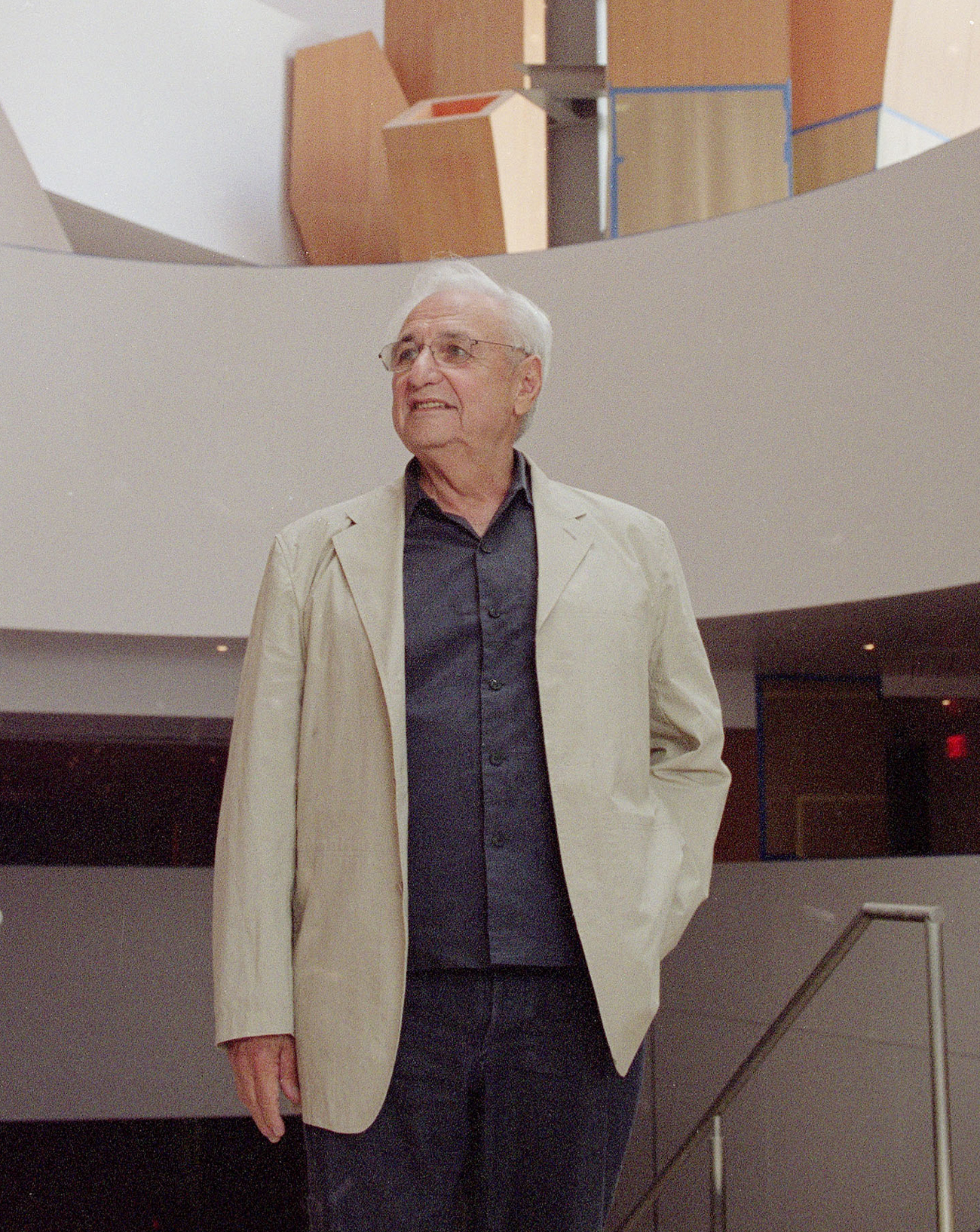 Les artistes Daniel Buren et Miles Greenberg photographiés par Vidar Logi pour leur exposition chez Reiffers Initiatives, à Paris.