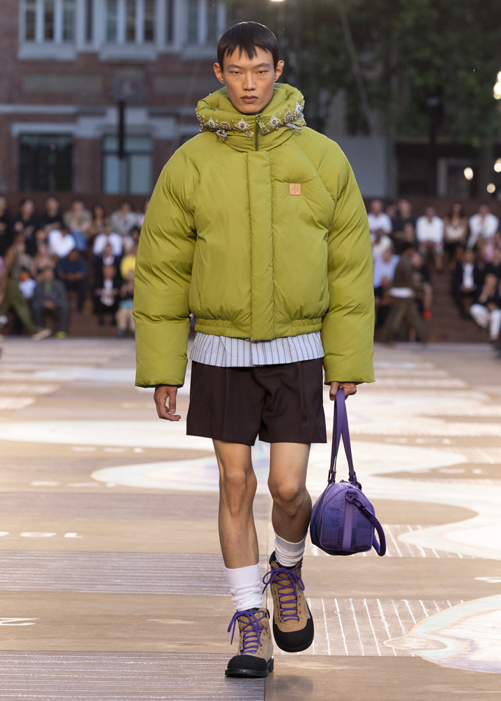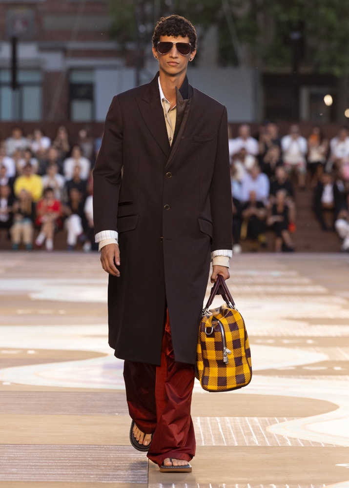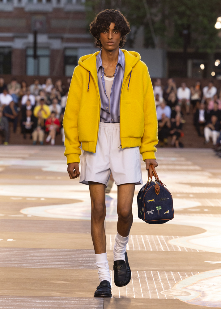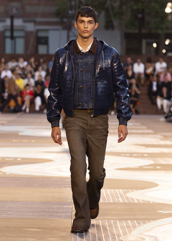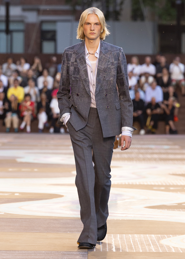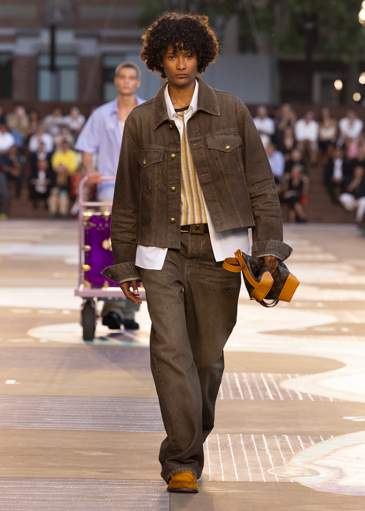 Imagined by Studio Mumbai, the set design of this show evokes the Indian board game “Snakes and Ladders.” On this life-sized board game, guests and models become the players. As a metaphor for life’s journey, the game blends Indian tradition with modernity, while evoking reverence for nature and self-reflection. Two values that align with Pharrell Williams’ philosophy.