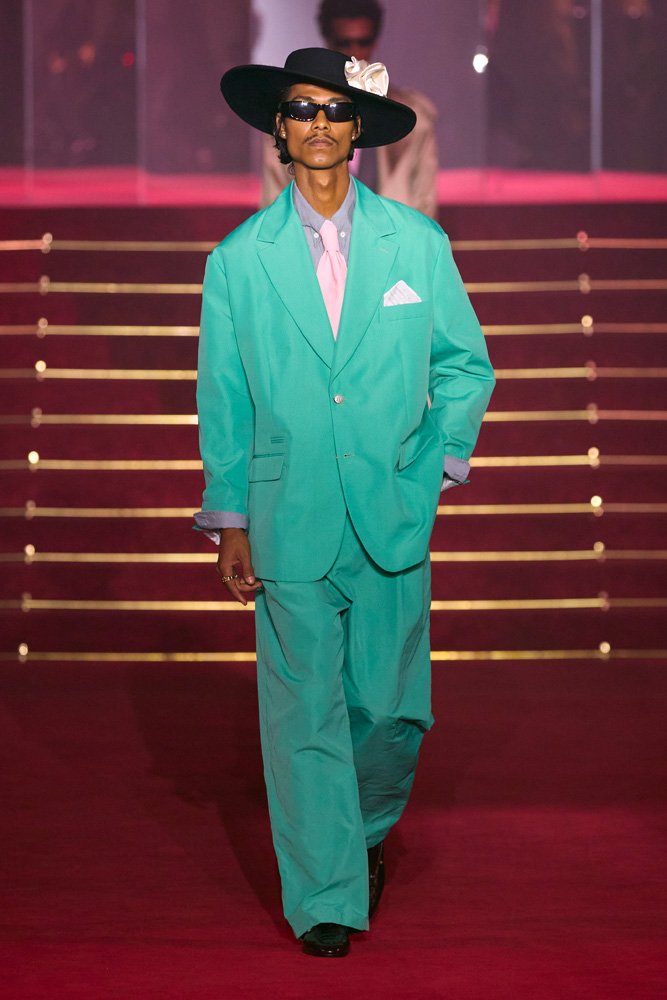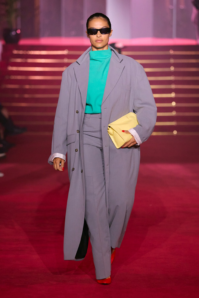 As for women, the cuts of the dresses and suits are sharp with defined waists, strong shoulders, and tailored sleeves. The womenswear was designed in collaboration with Rebeca Mendoza, the brand’s design director.