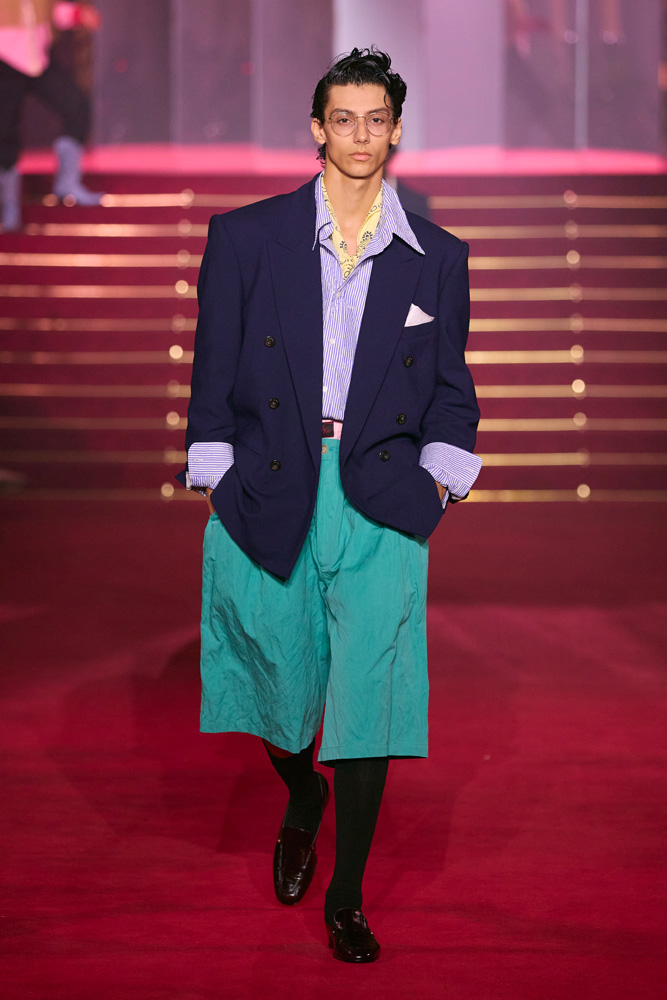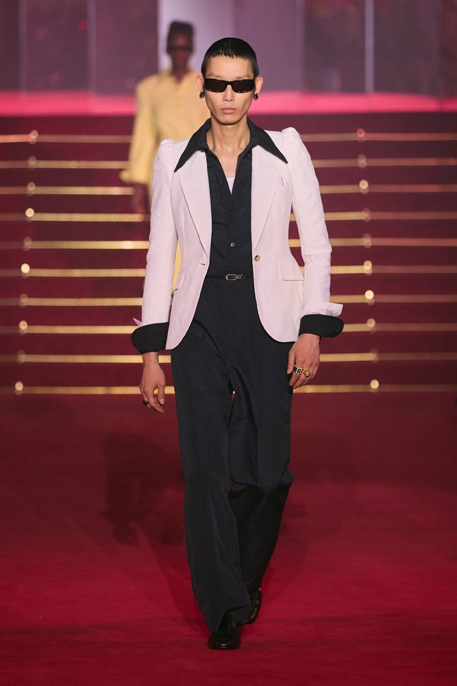 Another compelling aspect of Willy Chavarria’s shows is their cinematic approach. Wearing outrageously elegant creations, the models stride down the runway with a dramatic flair. Regarding menswear, Chilango-inspired silhouettes become casual suits, whose cuts are inspired by Mexican culture.