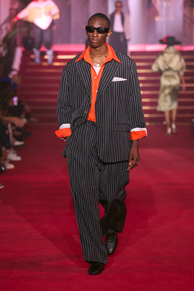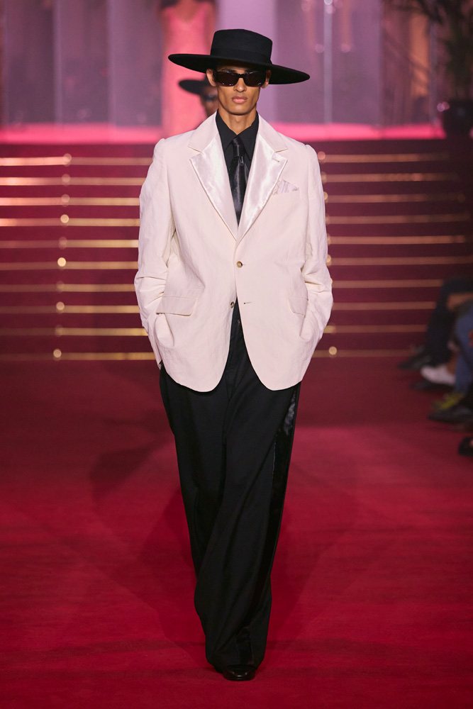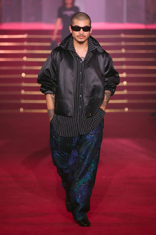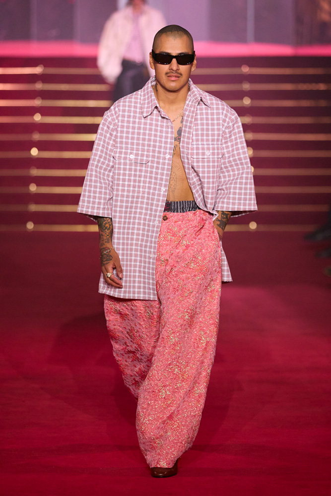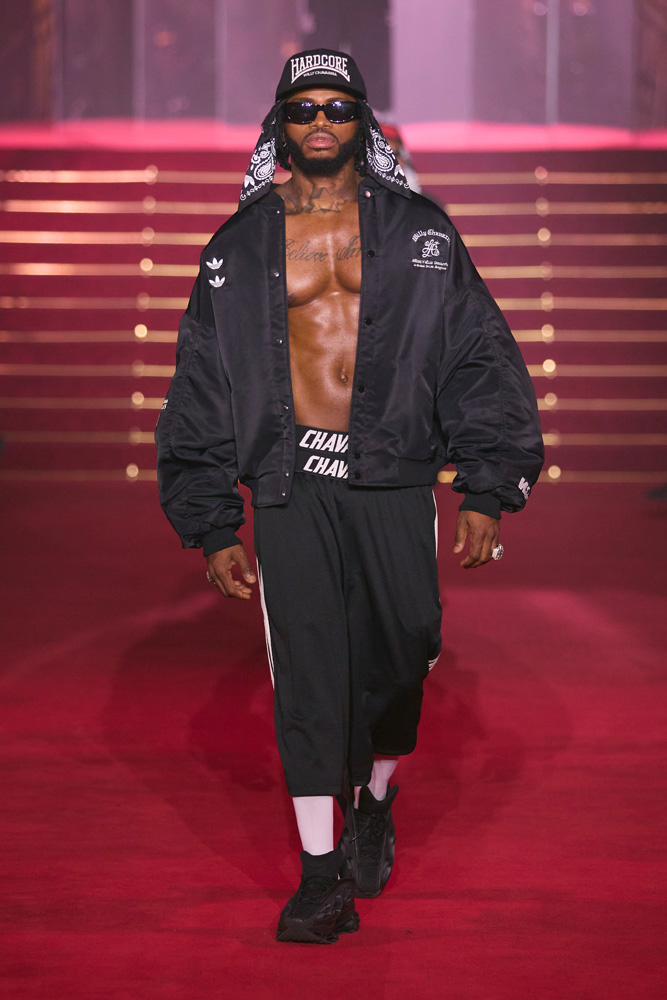 Here, each look reads as a glorification of identity. Just like his first Parisian show celebrating the 10th anniversary of his brand, Willy Chavarria has an iron fist in a velvet glove and conveys his message through joy and celebration.