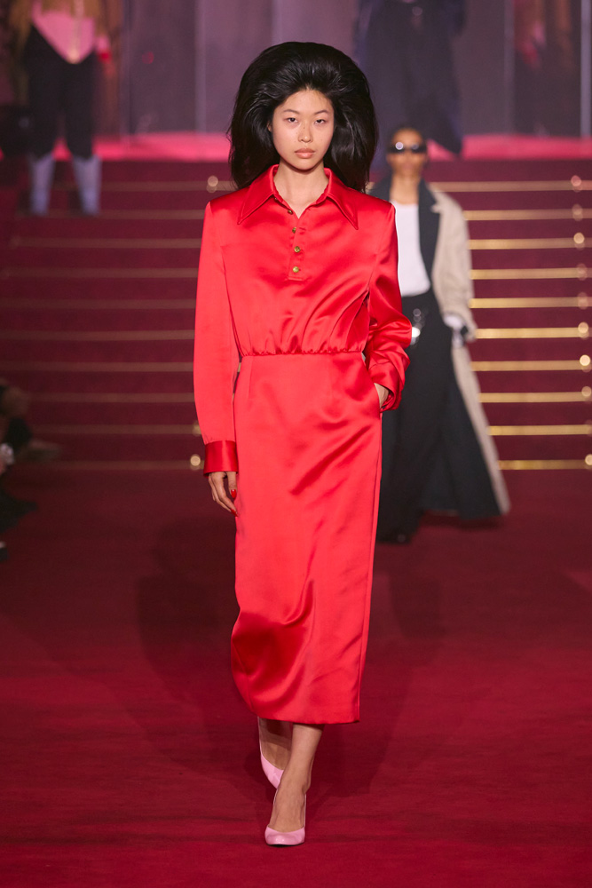 The most striking feature of this Spring/Summer 2026 collection is the use of colour as an act of rebellion. Vivid and electric, these colours channel characters that are powerful and untamed. They are reminiscent of the figures in the films by directors Pedro Almodóvar and Wong Kar-wai.
