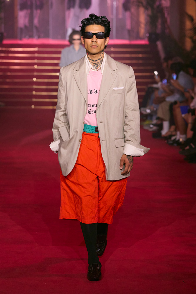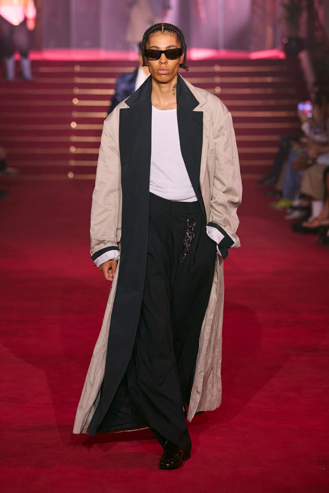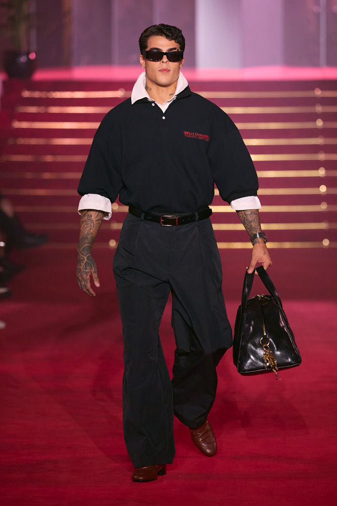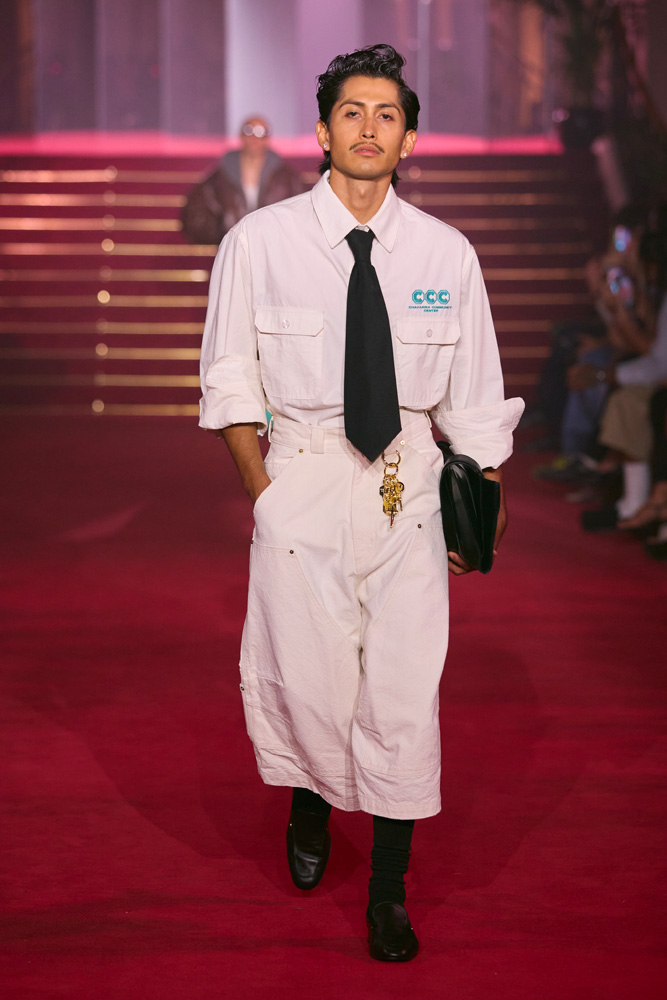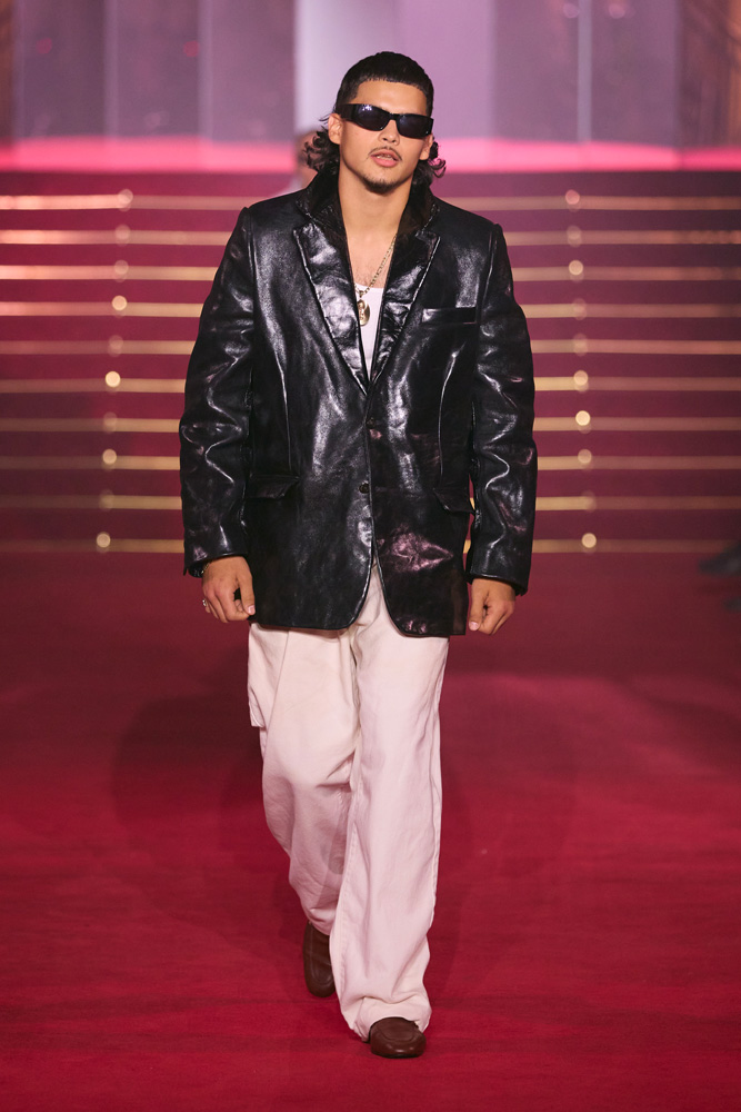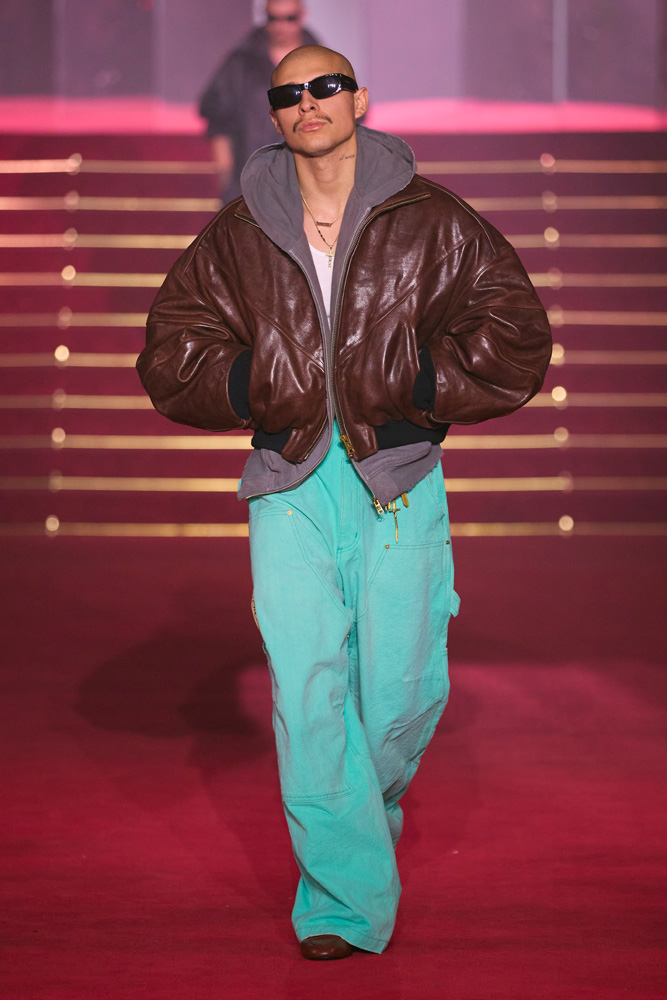 “As immigrant and trans rights, reproductive freedom, and more are threatened, we are taking action in courtrooms and communities to defend everyone’s rights. And we need you,” Willy Chavarria explains in the notes of his collection. There is little need to explain why the 2025 ANDAM finalist has been showing his collections in Paris for the past two seasons.