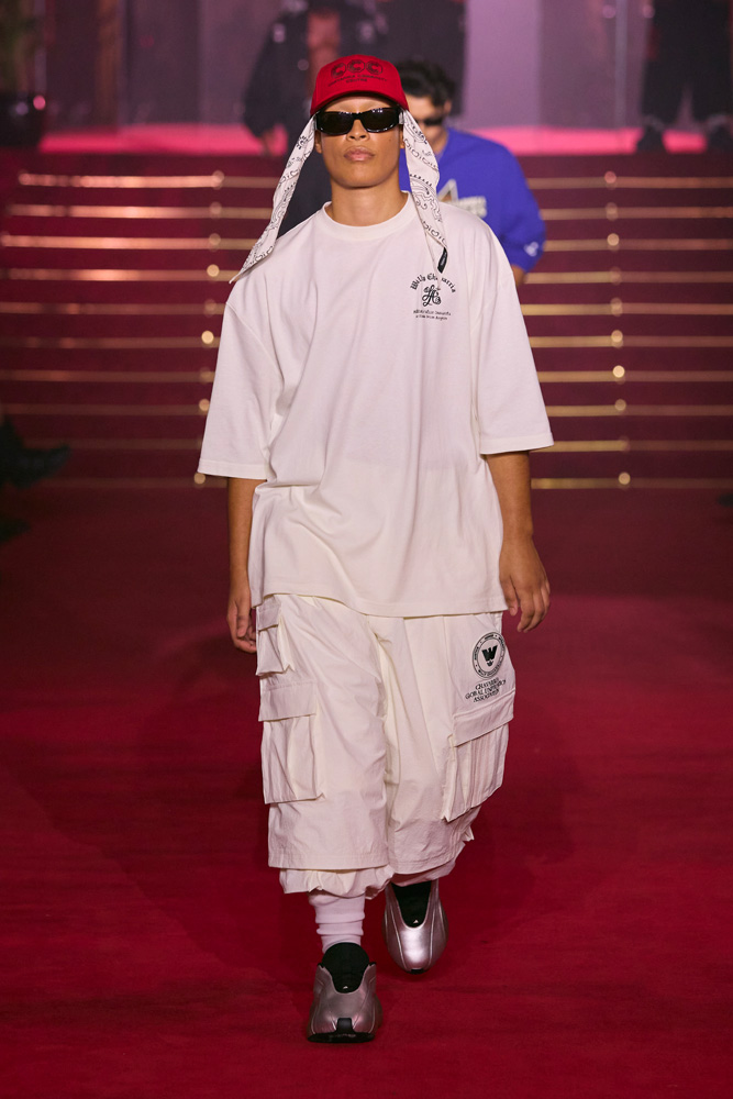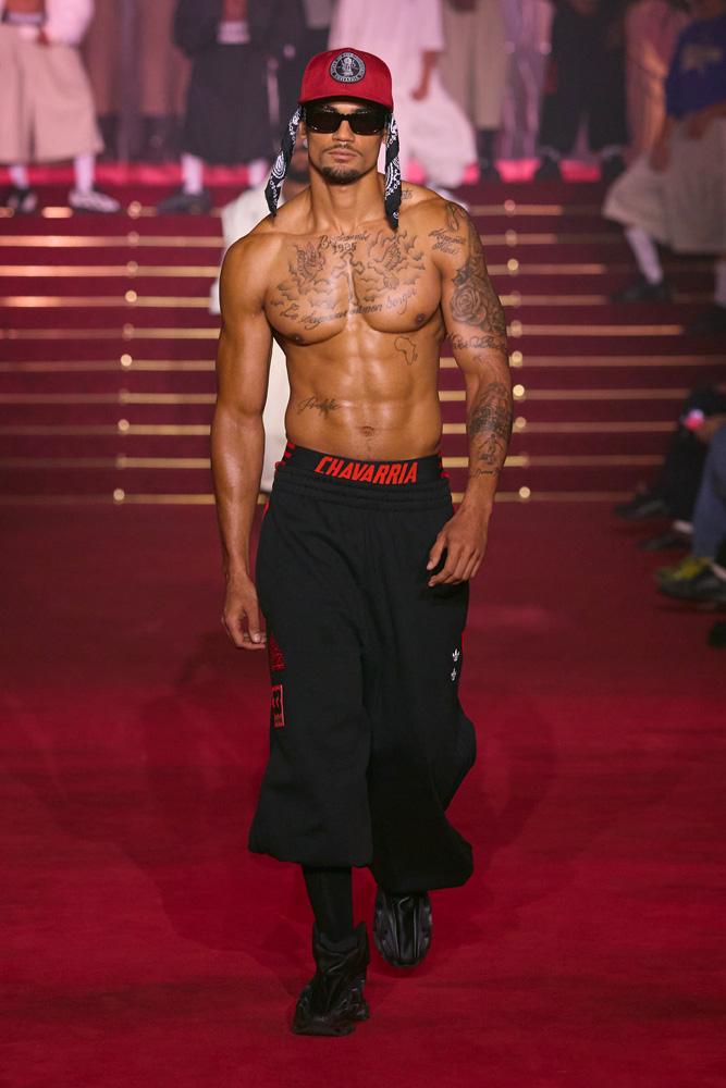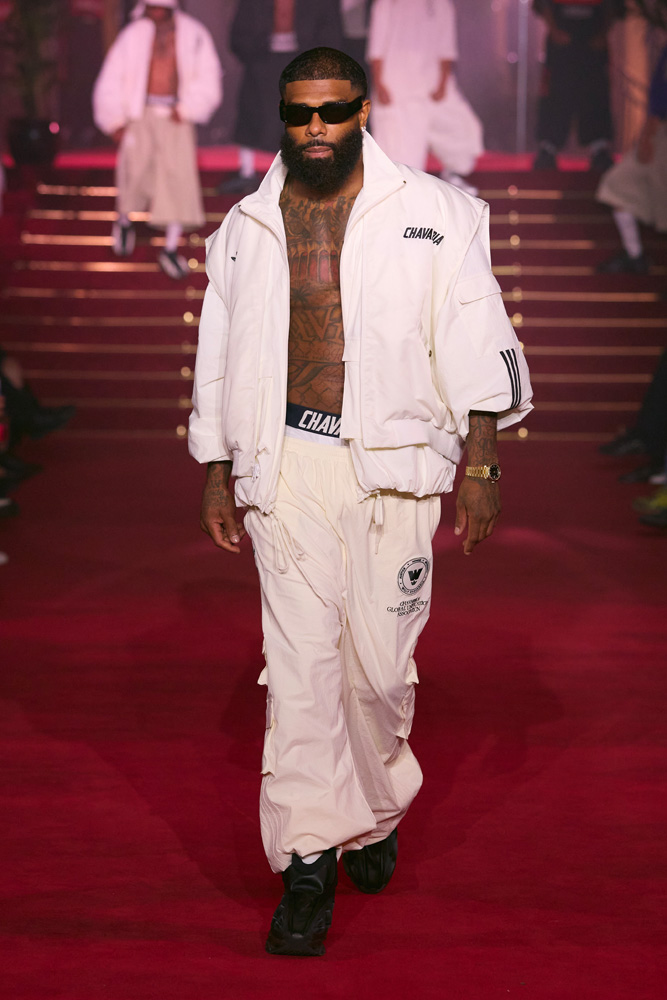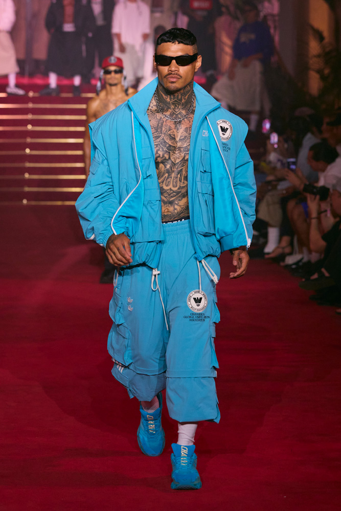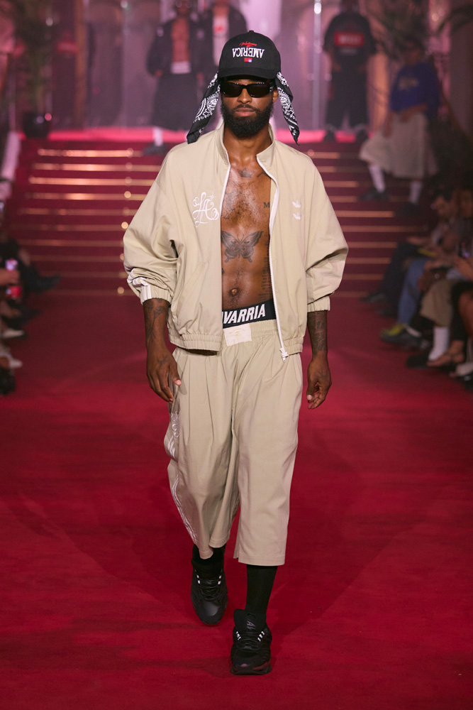 To the delight of his ever-growing community, Willy Chavarria also unveiled his third collaboration with Adidas Originals. Cotton tracksuits available in pink, sky blue, beige, white, and black brought a fresh, vintage, streetwear vibe.