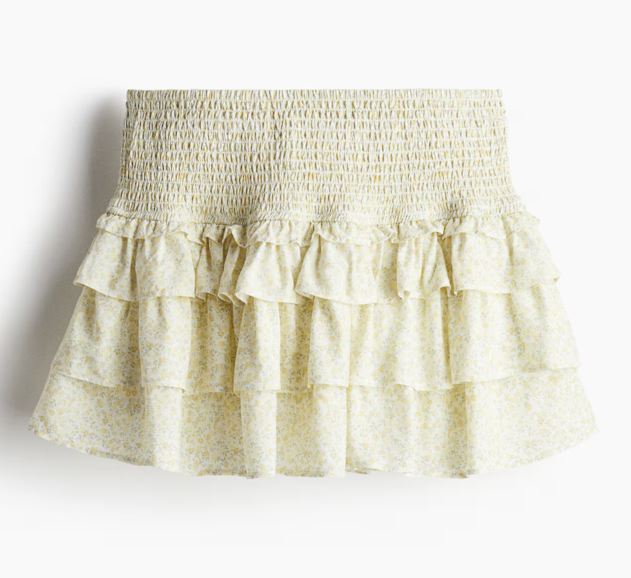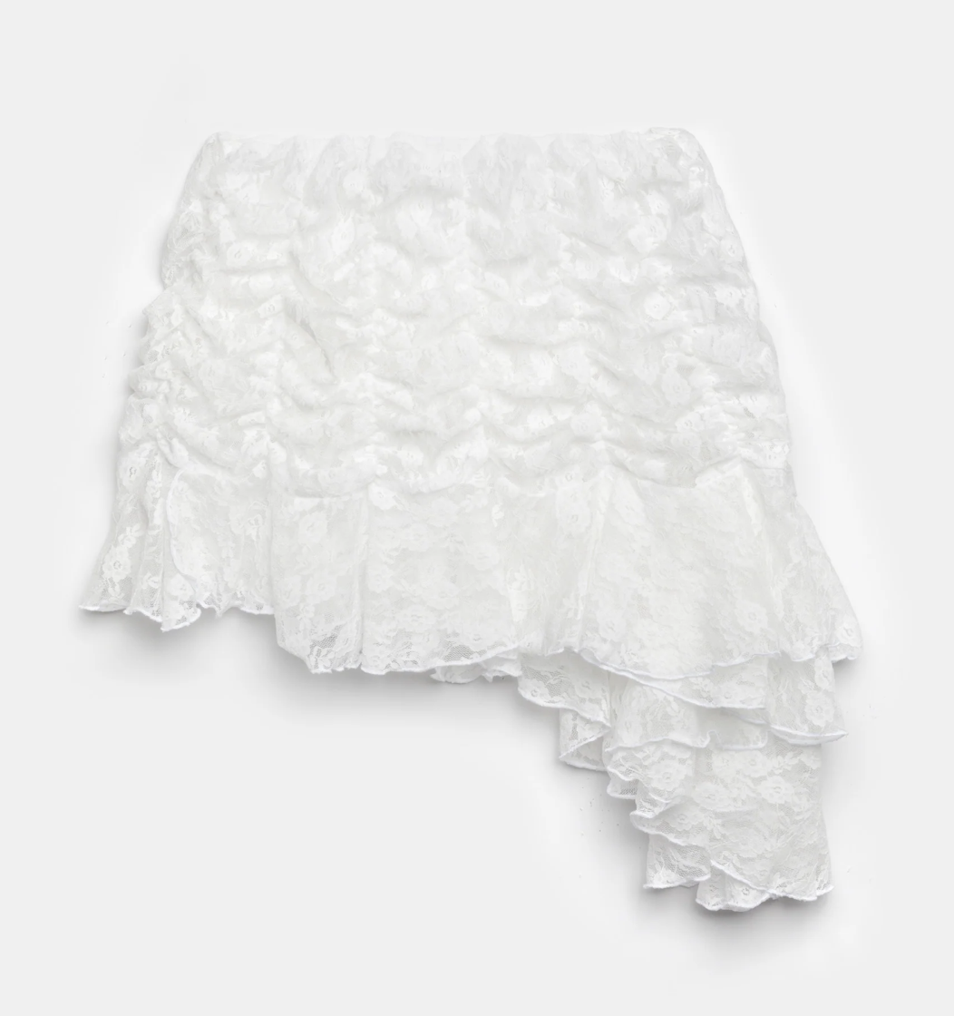 Alongside biker boots, slip dresses, skinny, ballet flats, and leather jackets, the ruffled miniskirt is a must-have if you want to channel the indie sleaze spirit. Whether it is from Saint Laurent or the Parisian label Ester Manas, this piece is perfect for festivals and capturing that rock ‘n’ roll Twiggy-like flair.
