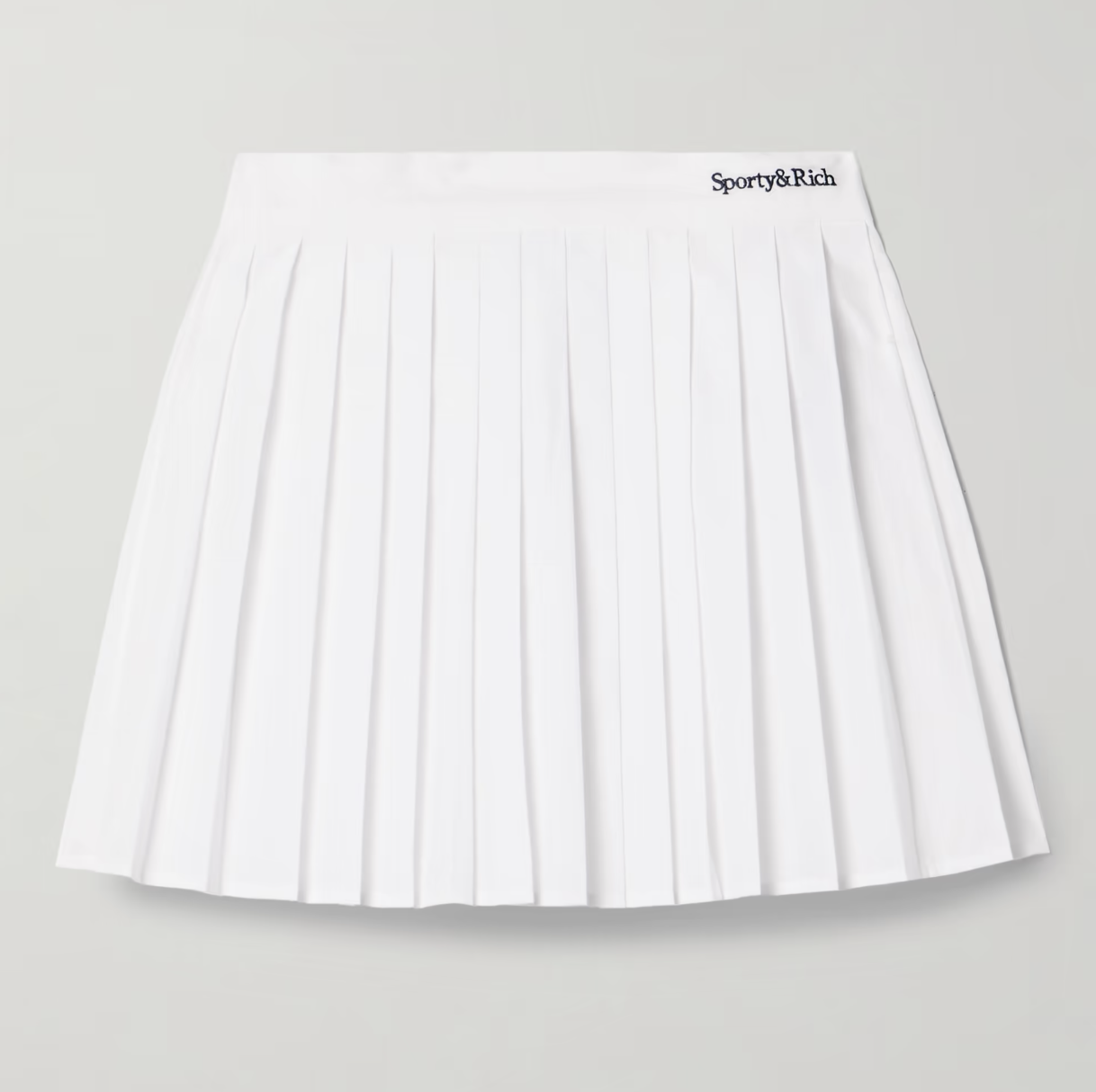As tenniscore is trending now, the pleated miniskirt is unmatched as far as comfort and lightness are concerned. While Miu Miu has made it the emblematic piece of the house, other labels are reinterpreting it their own way. Take for instance the sportswear white version by Sporty & Rich or the chic, strap-detailed design by Sandro.