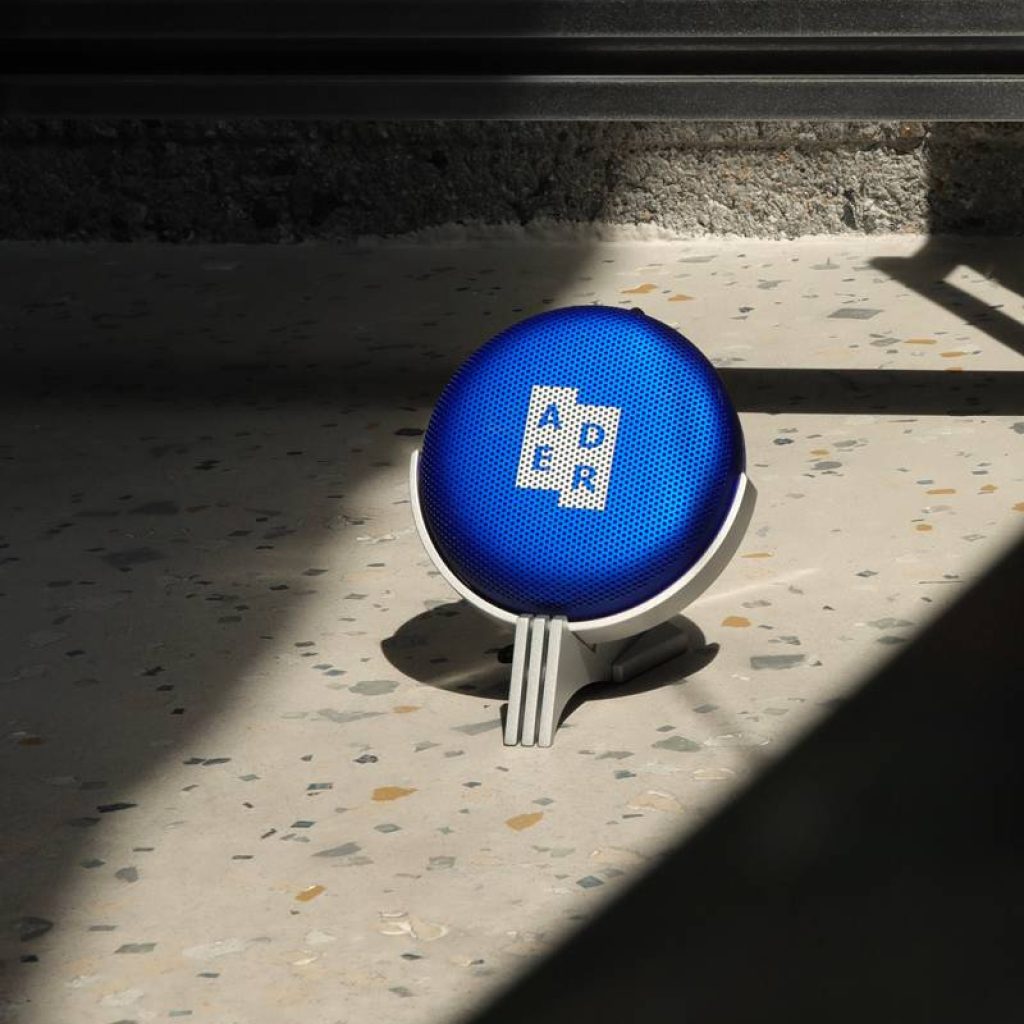 Le label de mode Ader Error s’associe avec l’entreprise Bang & Olufsen pour présenter une nouvelle enceinte portable haut de gamme. Le modèle emblématique Beosound Edge de Bang & Olufsen se pare ainsi d’une intense couleur Z- blue, signature du label de Séoul, fusionnant admirablement les univers de la mode et de la musique.