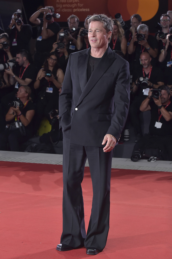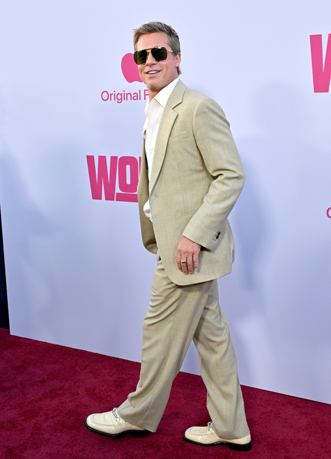 À la fois osée, minimaliste et profondément mode, cette allure s’affirme à travers des teintes peu communes et des matières luxueuses. Seuls fils rouges : les lunettes de soleil, aviateur ou rectangulaires, que Brad Pitt associe à n’importe quel look. Tout comme les mocassins ou boots à bouts carrés, qu’il ne semble jamais quitter.