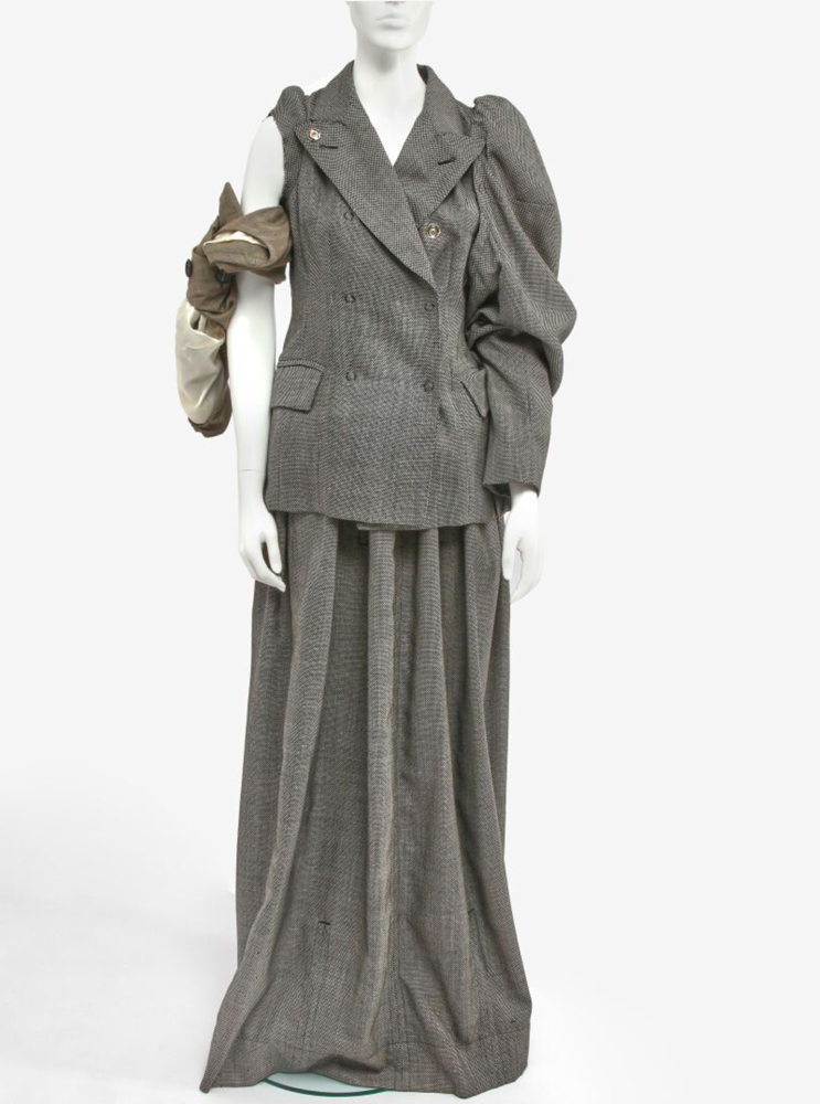 Celle-ci regroupait ainsi 270 lots signés par le couturier – tous vendus –, riche de patrons en papier, de croquis mais aussi de pièces issues des tout premiers shows de Martin Margiela. À l’image du costume en laine noire et blanche à pois, figurant au sein du défilé printemps-été 1990, qui attire alors toute l’attention et atteint le record mondial pour une tenue du couturier, adjugée 101 400 euros.
