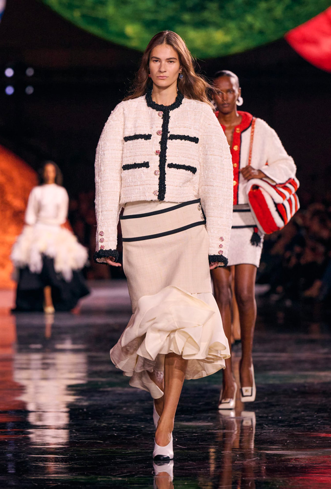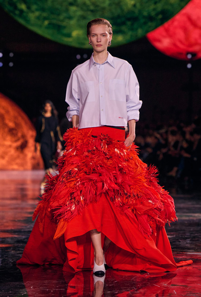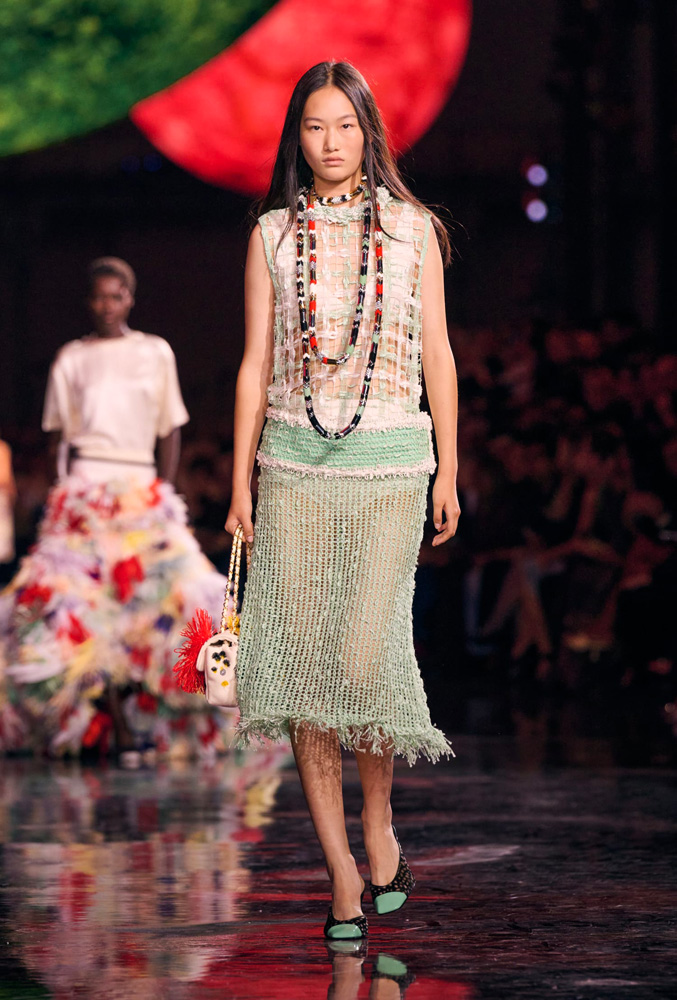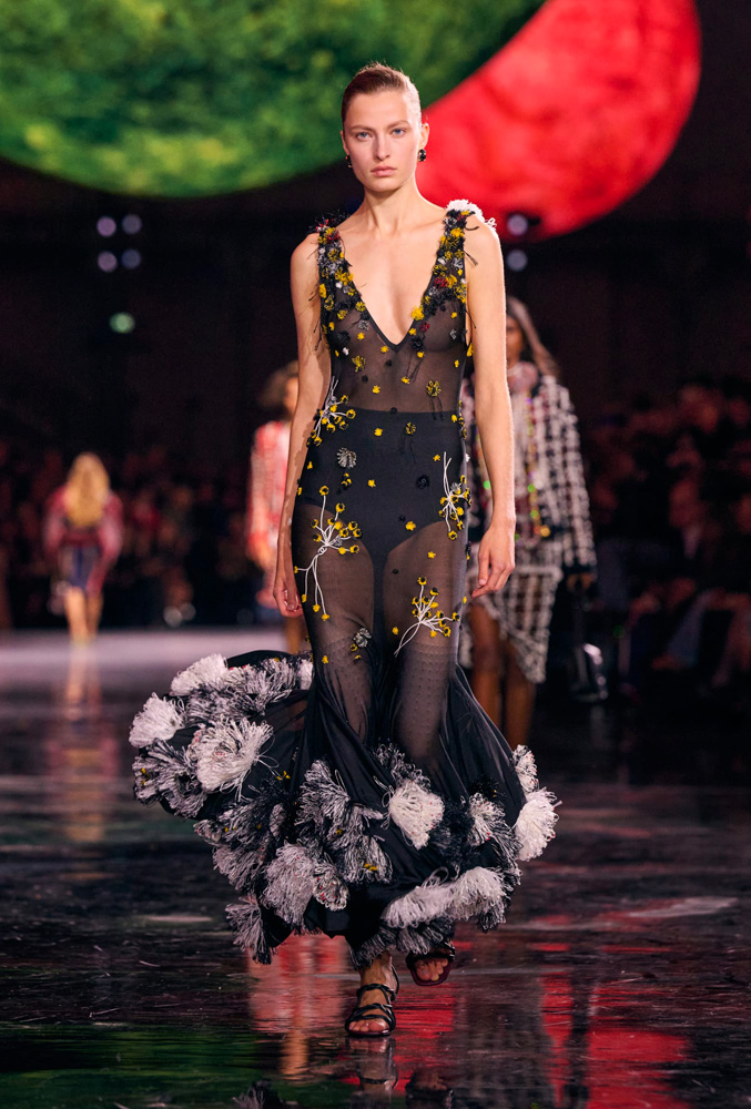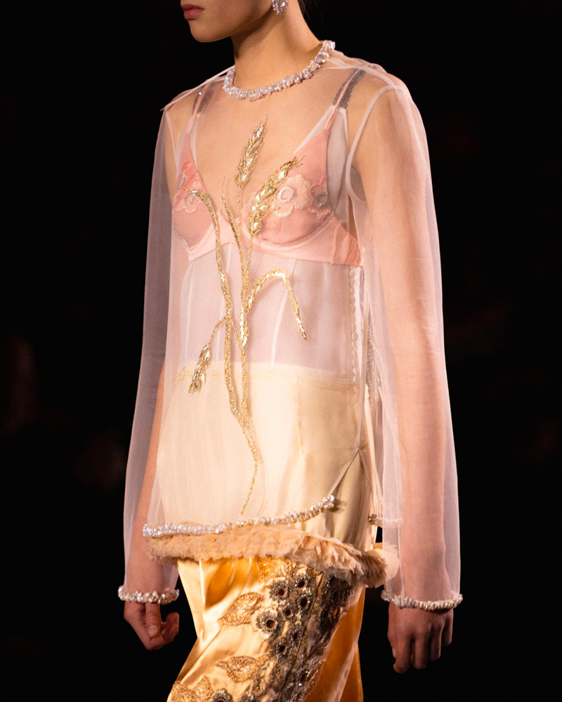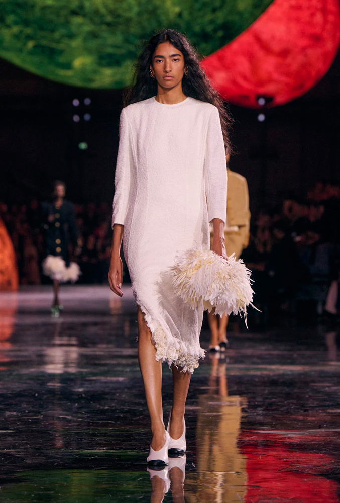 Naturellement, si les codes Chanel sont toujours bien présents, Matthieu Blazy leur applique sa vision du sublime porté par un artisanat d’exception. Ne l’oublions pas, la maison Chanel préserve avec ses Métiers d’Art, quelques-uns des savoir-faire les plus précieux du patrimoine français.