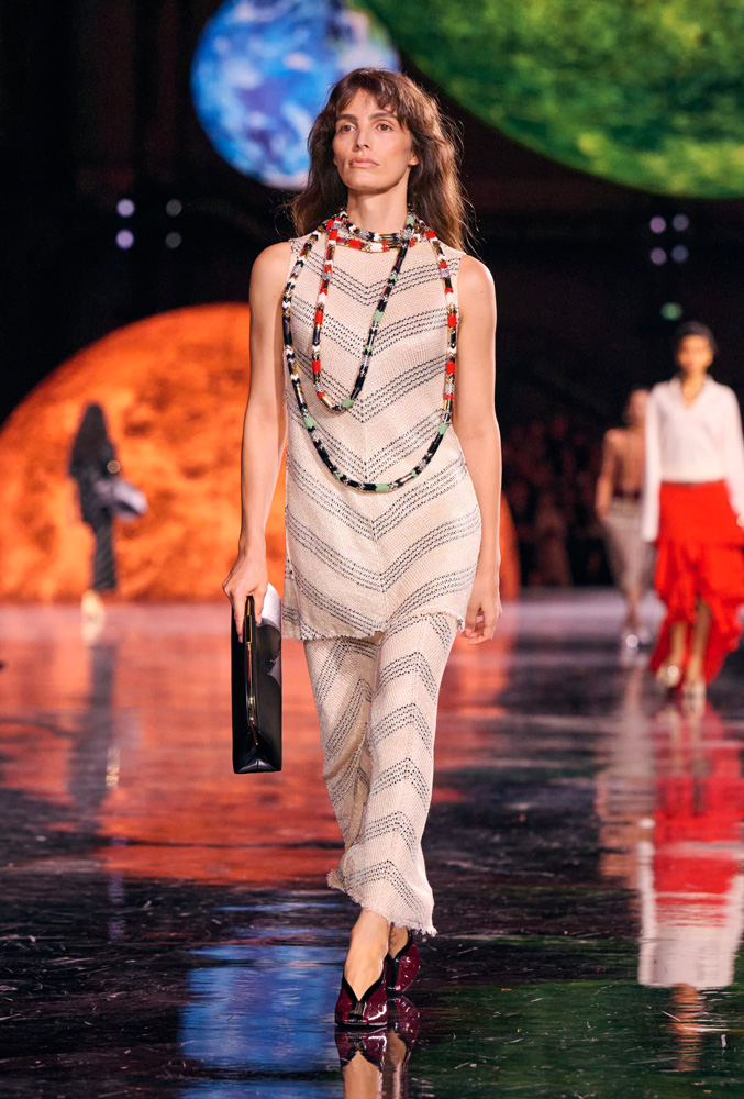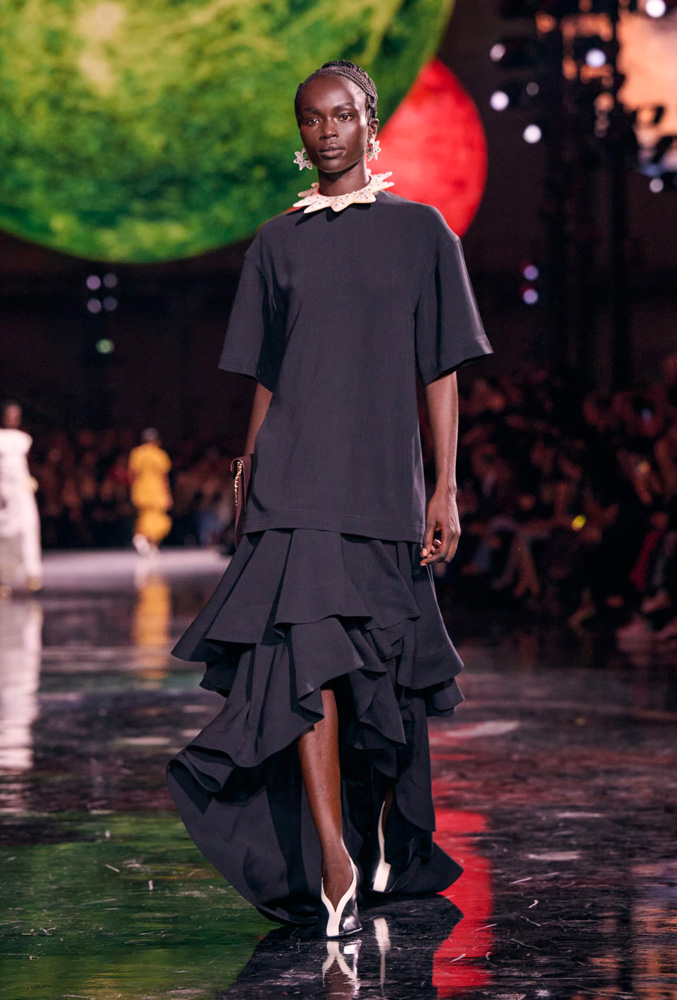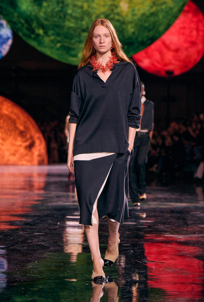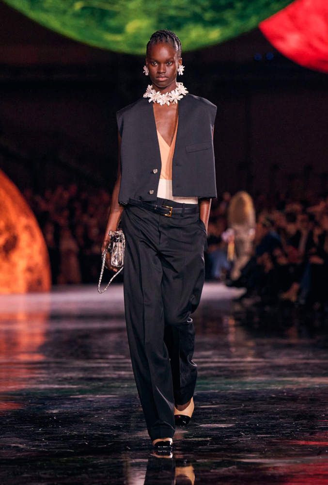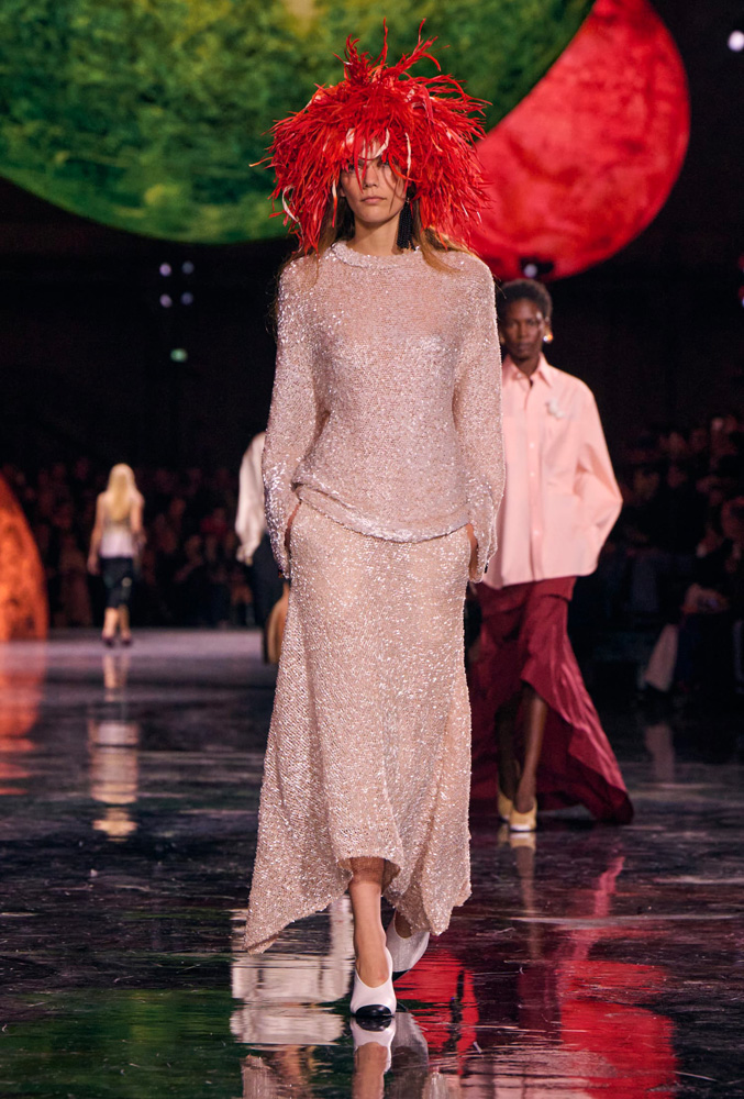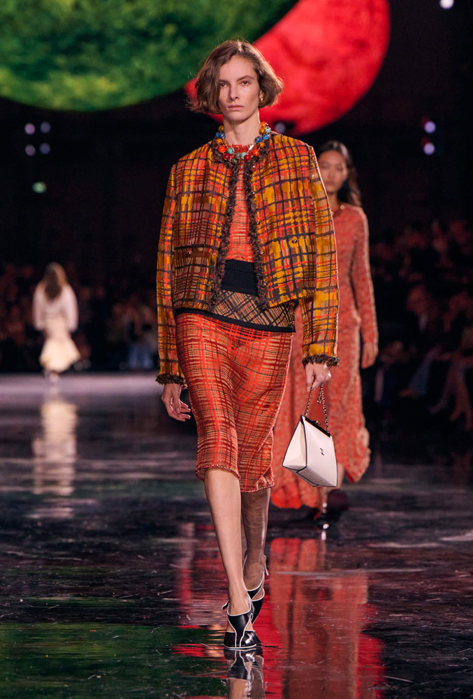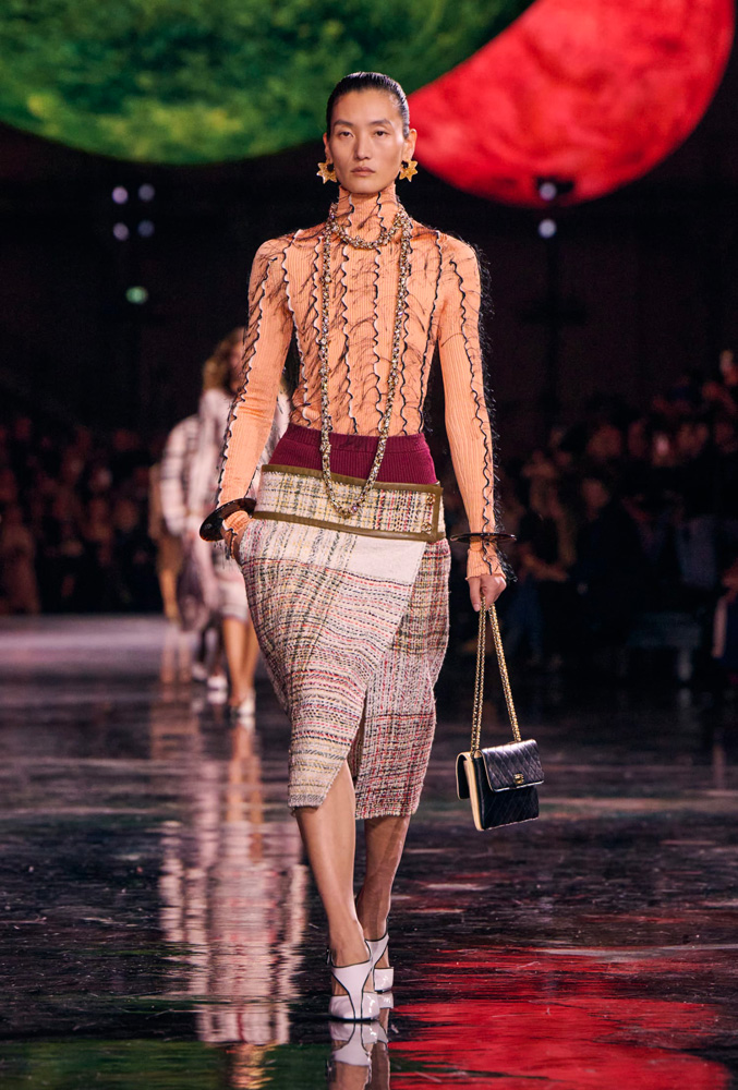 Sous la lune parisienne, l’Univers de Chanel se déploie en planètes colorées, dont les reflets dansent sur le sol noir et brillant. Une scénographie grandiose, rappelant l’ère Karl Lagerfeld, qui signe la renaissance d’une maison emblème du luxe français. “Ceci est un univers, l’Univers de Chanel. Dans ce monde où les contraintes ordinaires du temps et de l’espace ne s’appliquent pas, une conversation se déploie en trois actes.”