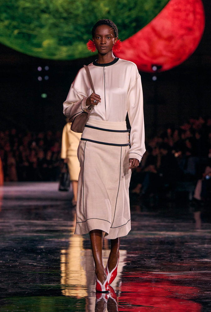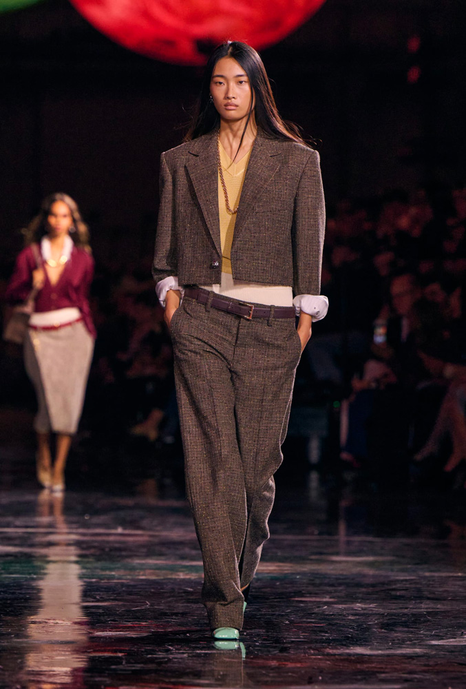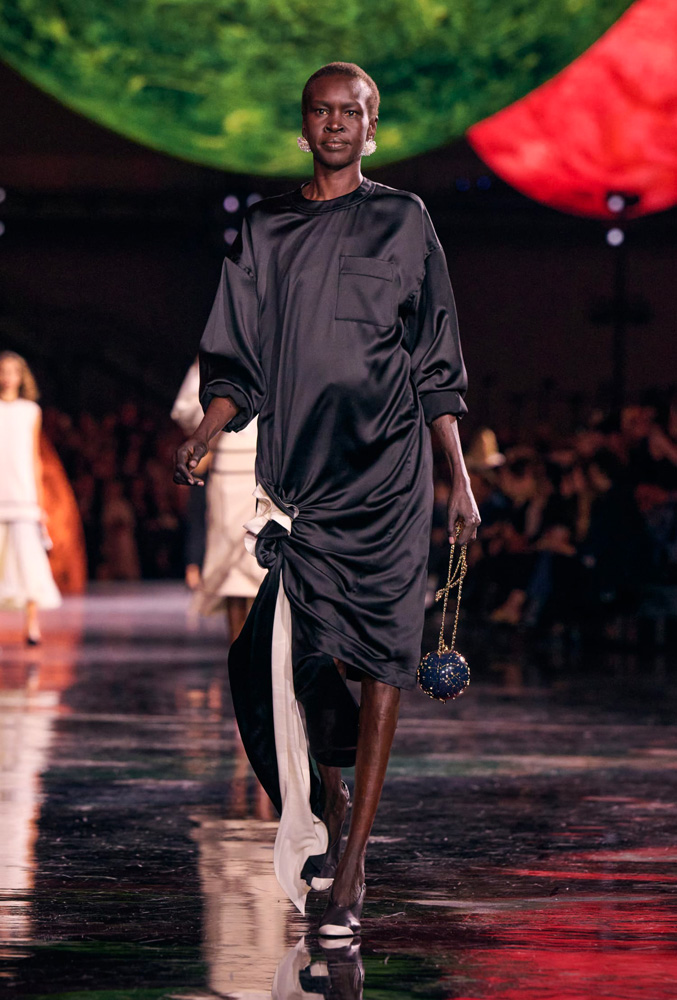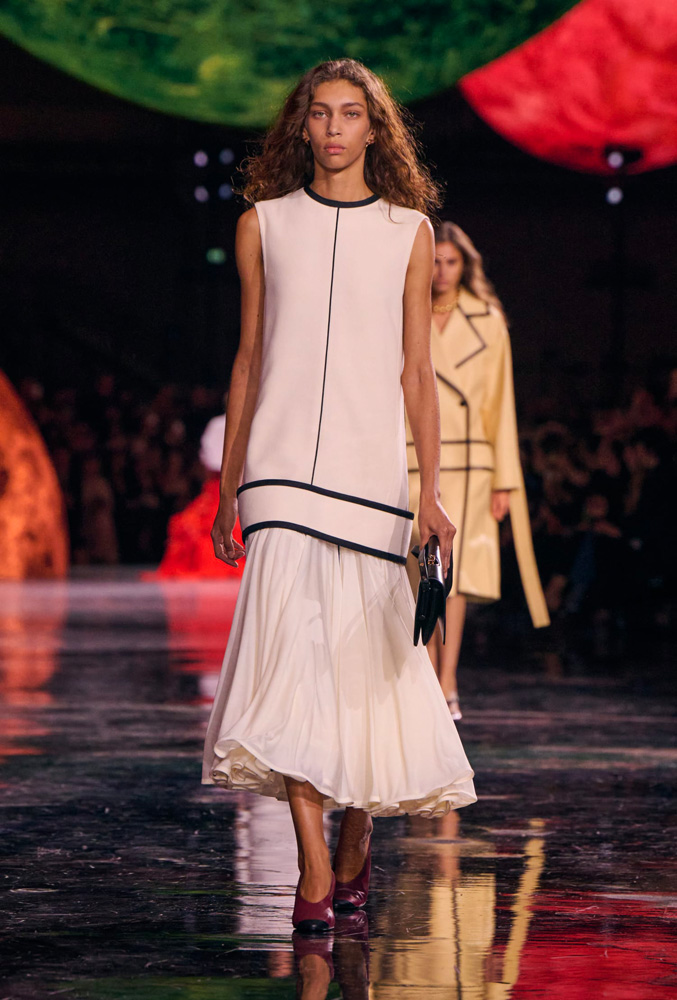 Saluée par une standing ovation, cette collection inaugurale apparaît ainsi comme le remède dont l’industrie avait besoin. Formé auprès de Raf Simons (2007-2011), Maison Margiela (2011-2014), Céline (2014-2016), Calvin Klein (2016-2019) et Bottega Veneta dès 2020, avant d’en devenir le directeur artistique en 2021, le Franco-Belge se révèle davantage architecte du mouvement que simple créateur. Il conçoit le vêtement en volumes, en gestes, en portés et habille sans jamais contraindre. Ainsi, le vestiaire, tout en sensualité, légèreté et confort, qu’il imagine aujourd’hui, s’adresse résolument aux femmes de son temps.