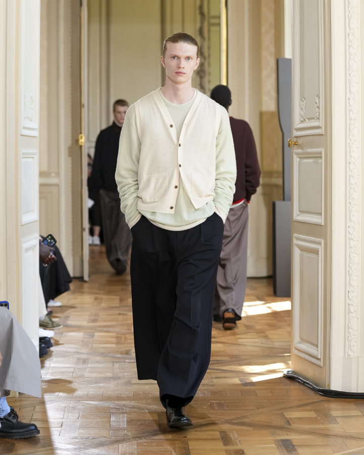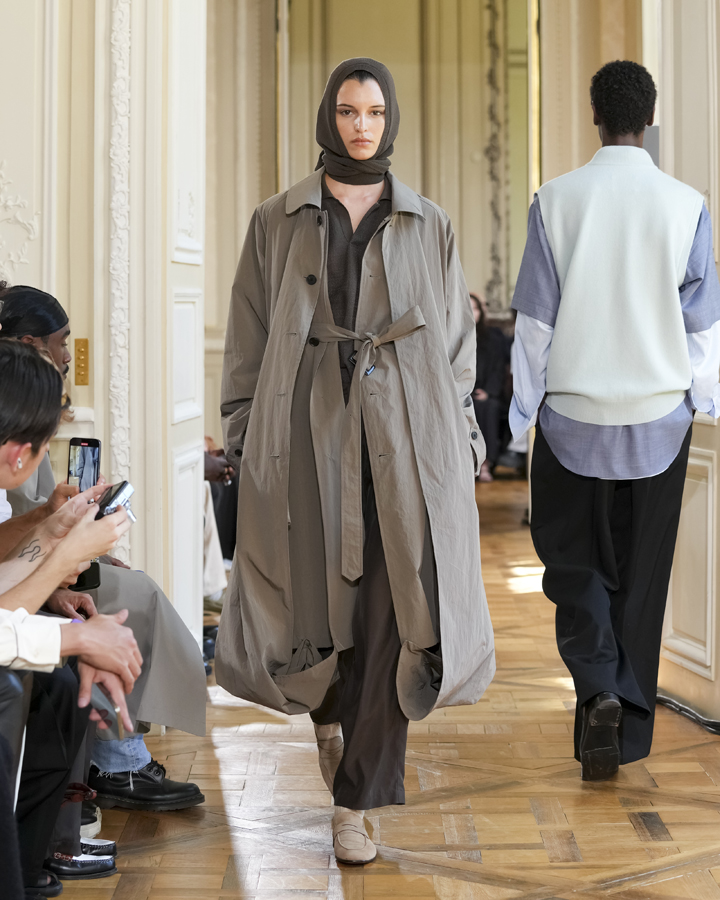 Ici, le layering est roi, et le travail de la matière règne en maître, du cachemire noble au cuir souple. Fortement influencé par la photographie et notamment par des artistes tels que Corrine Day ou encore Juergen Teller, Kiichiro Asakawa dévoile une collection printemps-été 2026, où, il faut le dire, le quiet luxury et l’élégance semblent avoir atteint leur apogée.
