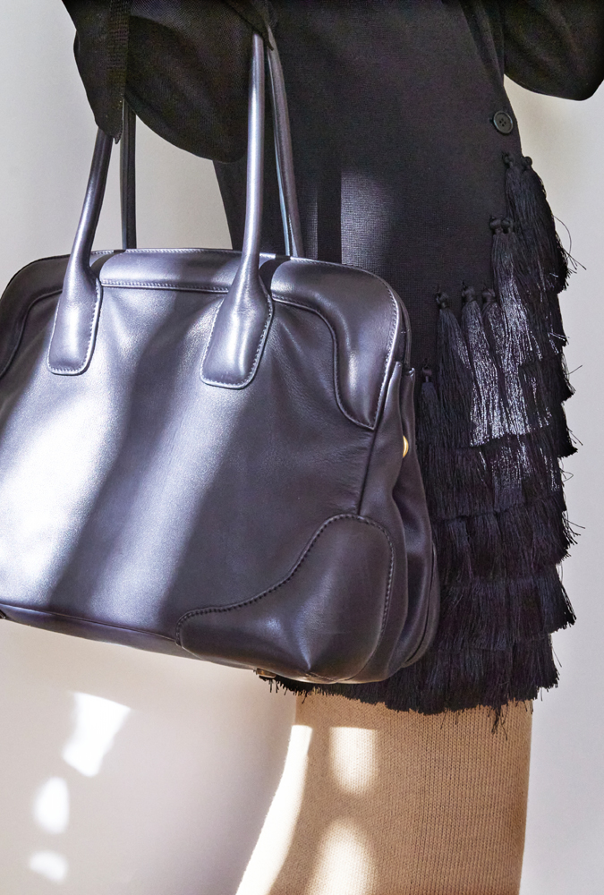 À commencer par les sublimes sacs, dont les bordures sont inspirées par les cadres des œuvres d’art, et dans lesquels on trouve la place de fourrer tous nos essentiels de bureau (puis pour l’été, sitôt que l’on pourra partir en vacances). À travers un design sobre et luxueux — signature du label –, les pièces se déclinent dans une palette simple. Du bleu, du noir, du gris, du beige, ponctuée ça et là de rose ou de rouge. Les looks sont soignés et les coupes sont ni trop cintrées, ni trop larges… Bref, l’incarnation de l’élégance.
