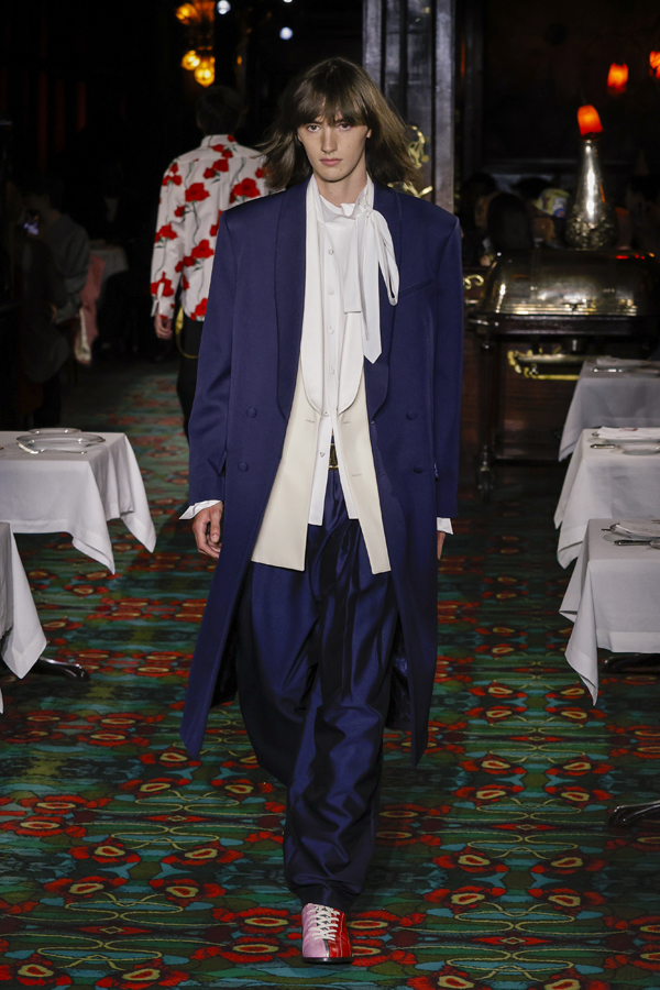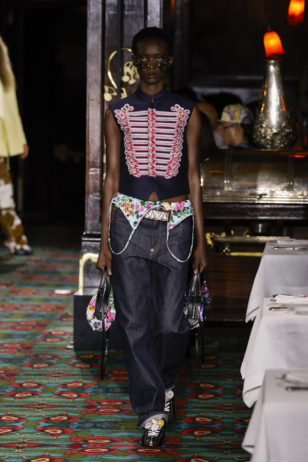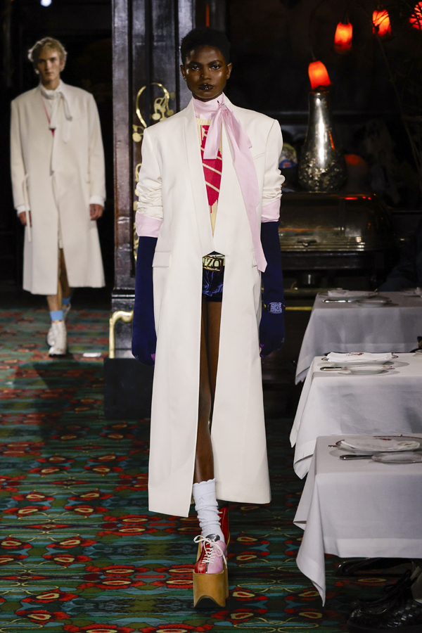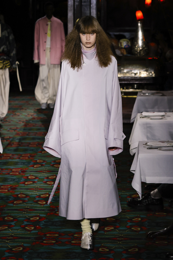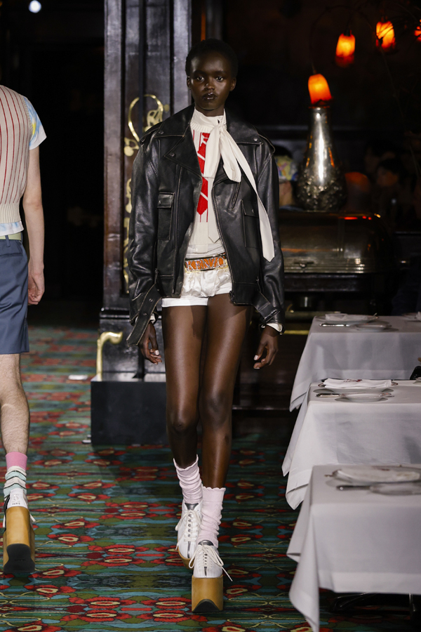 Mais ce dont on raffole tout particulièrement, ce sont des micro-jupes en moire et des pantalons aux courbes arrondies, inspirés cette fois-ci des archives de la maison. Entre une allure urbaine assumée, une esthétique pyjamacore, un dandysme réinventé et des influences du Londres des années 1970, Kenzo déploie des looks affranchis de tout dictat.