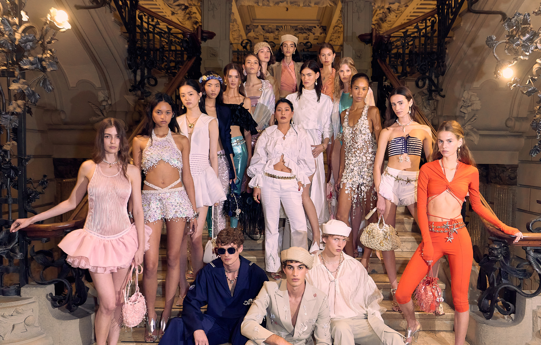 À l’origine de cette nouvelle collection se cache en effet une inspiration plus disruptive et cryptique que celle, très artistique, qui nourrissait les précédentes saisons. Pour le printemps-été 2026, la princesse plonge dans l’imaginaire mystérieux de la mer. De la puissance des vagues à la beauté du scintillement de l’eau, en passant par les secrets que cachent ses profondeurs et le mythe des sirènes… La mer regorge en effet d’un univers visuel fort, au sein duquel la créatrice semble donc se plonger.