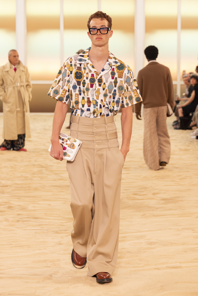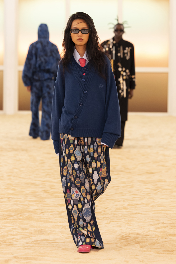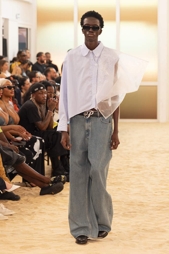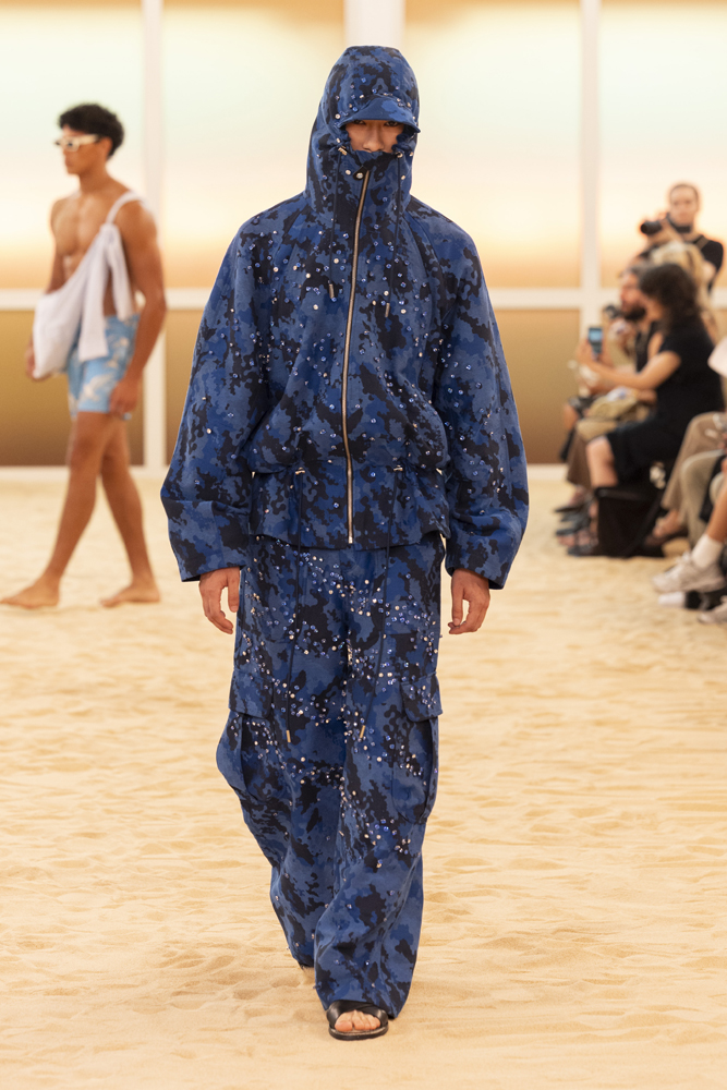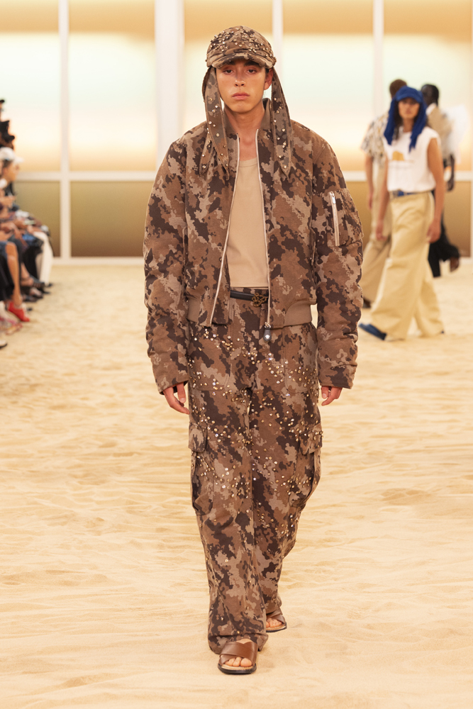 “Je pense que l’on est tous ce voyageur perdu dans le désert à la recherche de sens, à la recherche de but dans nos vies”, confie le créateur parisien en backstage. C’est cette quête, teintée d’introspection, qui l’a poussé à convoquer l’imaginaire du Petit Prince, [roman à succès d’Antoine de Saint-Exupéry publié en 1943, ndlr]. Comme une boussole émotionnelle. “Le Petit Prince, c’est le début de l’histoire. Ce personnage qui s’écrase dans le désert en avion et qui erre à la recherche de sens.”