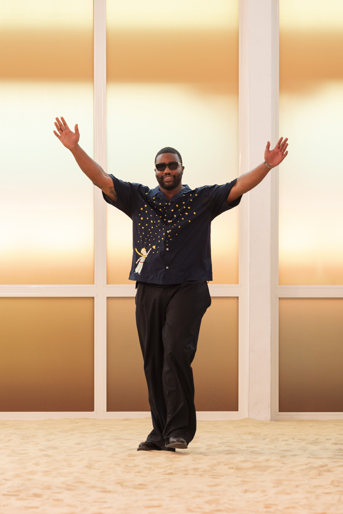 Le créateur Jean-Charles de Castelbajac, l’une des grandes inspirations d’Émeric Tchatchoua, se mêle au casting de ce défilé, avec une énergie intacte. “Nous sommes tous les deux admirateurs du travail de l’autre. Cette collection parle du Petit Prince, et Jean-Charles est un éternel enfant”. Mais ce n’est pas tout. Autre apparition marquante, celle du rappeur French Montana. “C’est l’un de mes artistes préférés, avec qui j’avais déjà connecté il y a quelques mois”.