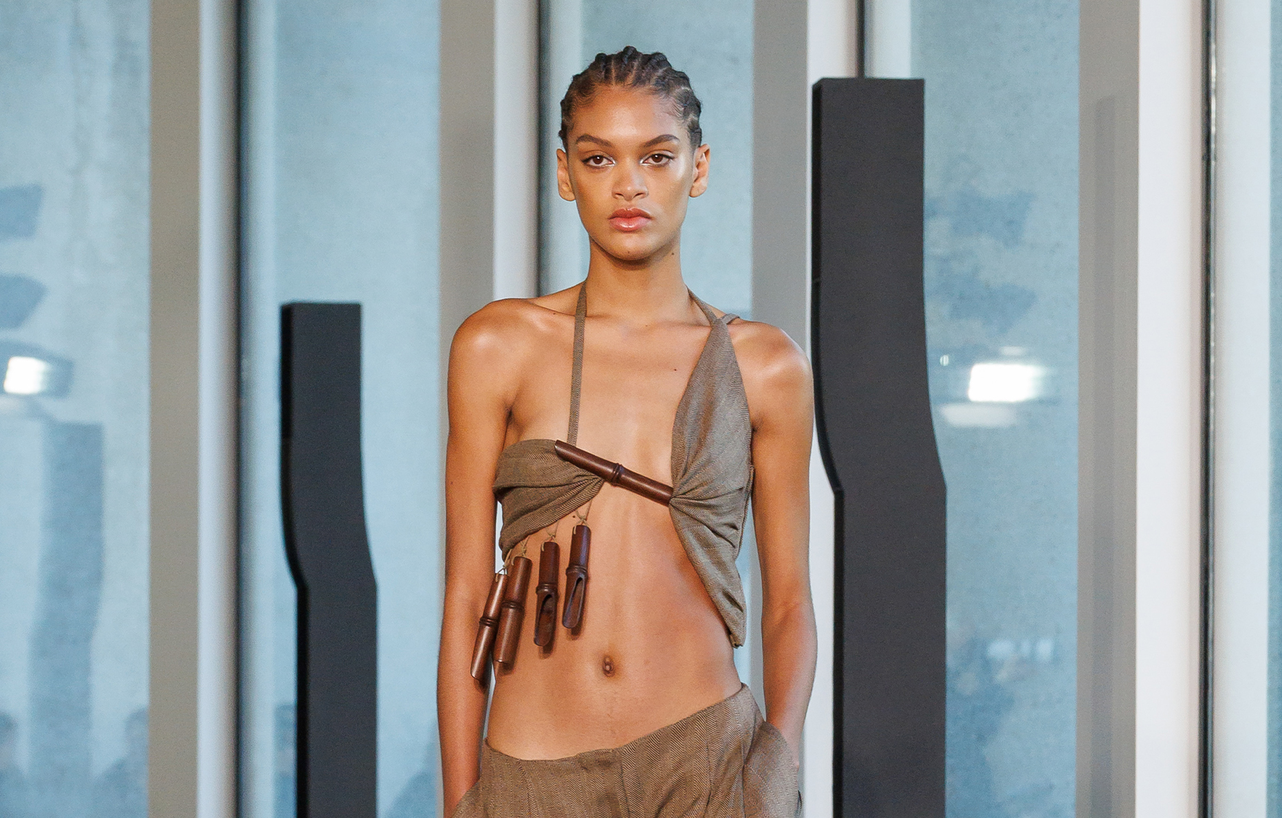 Autre détail surprenant repéré au défilé Christopher Esber : des petits carillons. Ils ornent tour à tour un décolleté, un tour de cou ou le haut d’une jupe. Fabriqués et tournés à la main à partir d’érable du Queensland, ces petits accessoires conçus sur-mesure ajoutent ainsi du relief aux silhouettes voluptueuses et légères de cette collection printemps-été 2026.