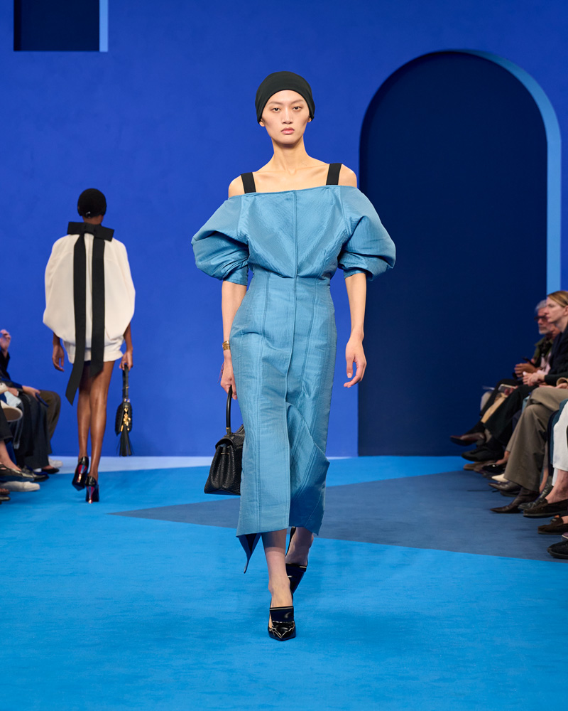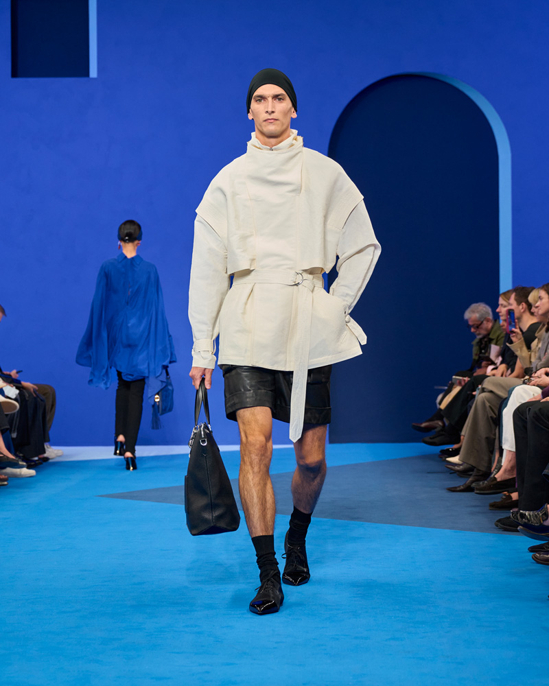 Au fil des 60 silhouettes de ce défilé Lanvin printemps-été 2026, on s’arrête sur les vestes au col montant, les robes aux épaules tombantes, la nouvelle gamme de sacs… mais aussi le travail du dos. Car c’est lui qui semble avoir fait l’objet de toutes les attentions au sein de la maison de mode.