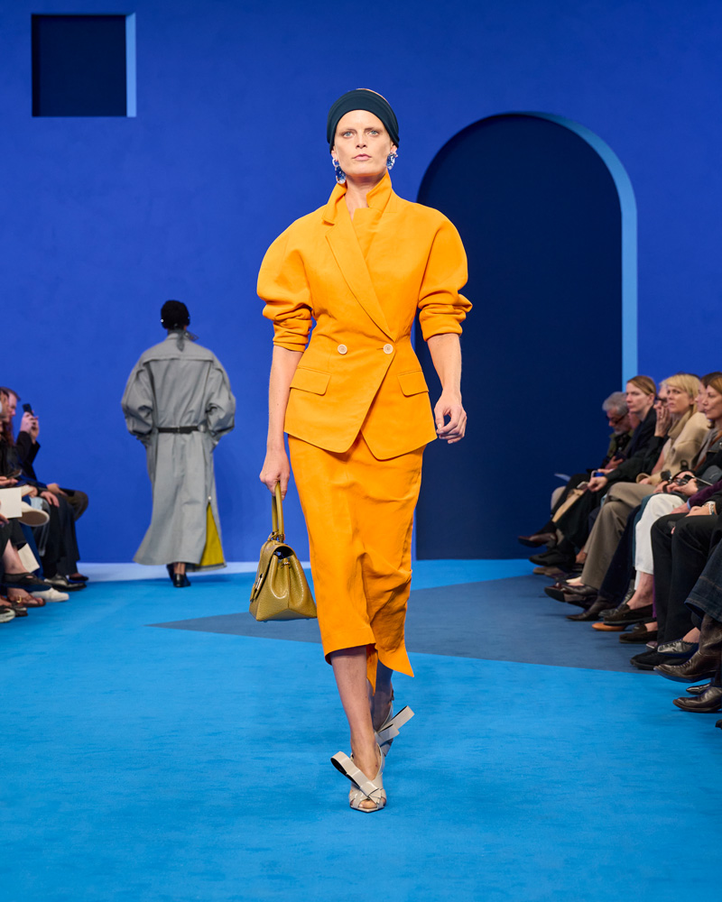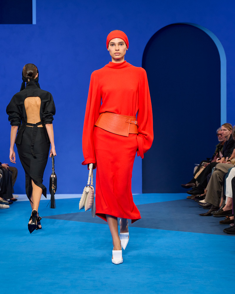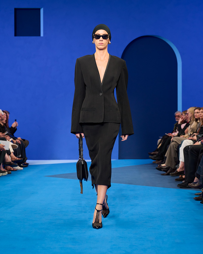 C’est dans le dos que se boutonnent les chemisiers en soie, que se dévoilent les nœuds d’attache de certaines robes — sans doute un clin d’œil au regretté Alber Elbaz qui en avait sa signature. Là encore, qu’oscille une chaine de bijoux ou que se dévoile, grâce à une robe cut-out, le bas d’un dos.