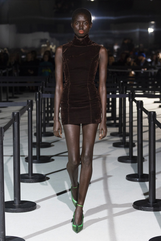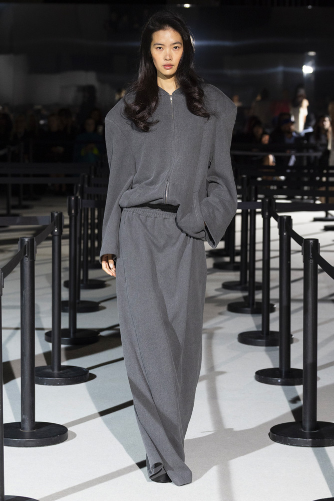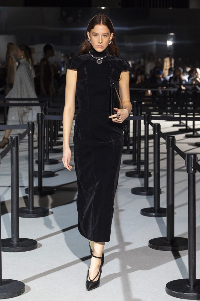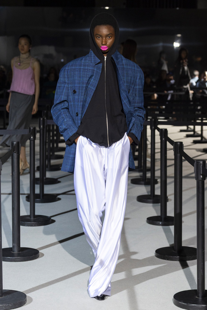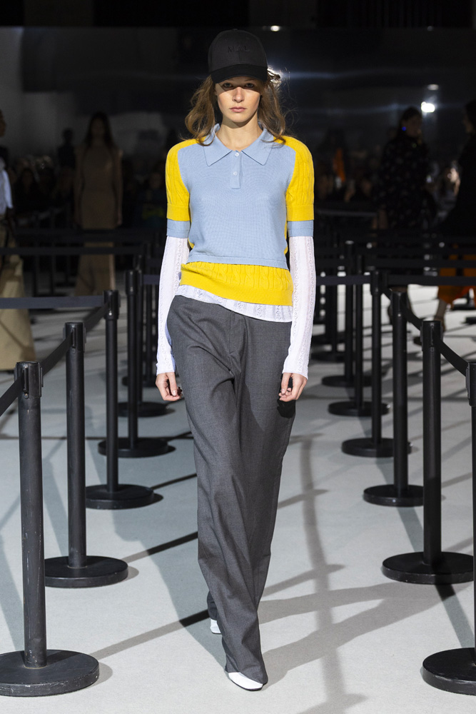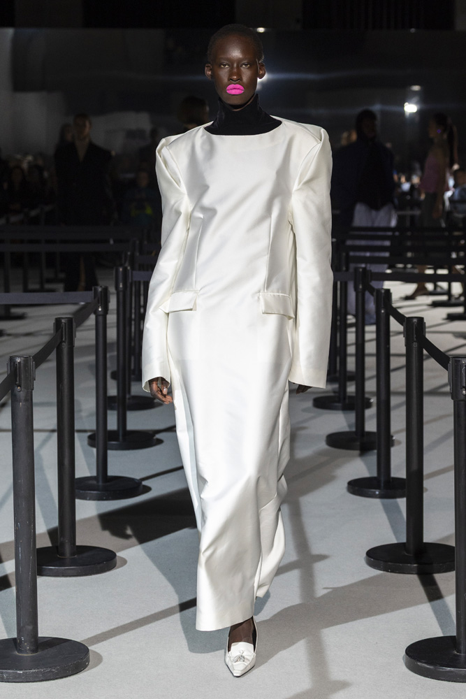 Diplômée de la prestigieuse École de La Cambre en 2020, Marie Adam-Leenaerdt prend définitivement son envol avec ce défilé présenté au Grand Palais Immersif. Alors que la scénographique labyrinthique s’inspire des files d’attentes d’un aéroport, la collection habille des femmes aux styles hétéroclites. Tandis que chaque silhouette exhale cette touche intemporelle que maitrise à merveille la créatrice, des détails inattendus se cachent ça-et-là.