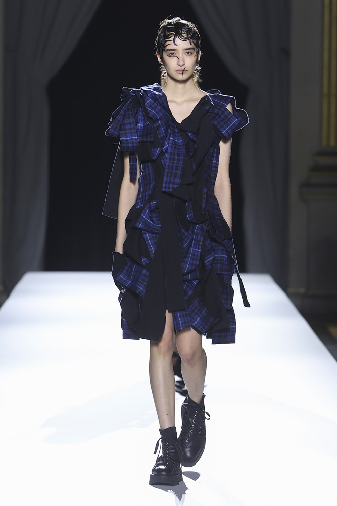 Sous les chandeliers de l’Hôtel de Ville de Paris, cet appel à un regard attentif, à la quête de l’émotion dans la mode avait quelque chose de rafraîchissant. Poétique. Peut-être aussi parce que la force de Yohji Yamamoto réside dans sa capacité à faire preuve de constance, à se réinventer dans les détails et la forme.