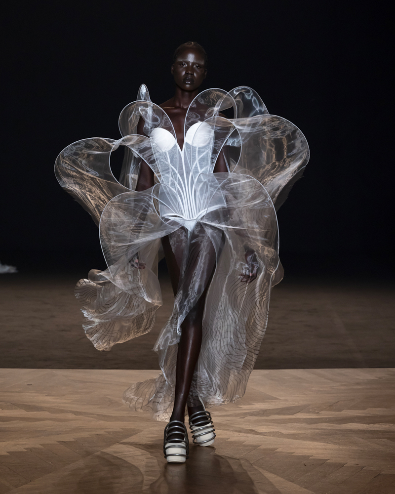 Qui dit haute couture, dit aussi look spectaculaire. Terrain d’expérimentation et de liberté créative bien plus que lors de la saison du prêt-à-porter, la haute couture permet en effet aux créateurs d’explorer les savoir-faire de leurs ateliers – autant que les limites de leur imagination. Si Iris van Herpen trône toujours parmi les premières places du podium des défilés les plus époustouflants au gré de ses créations aussi sublimes que novatrices, on compte également des propositions audacieuses chez ses confrères et consœurs.