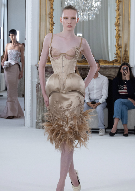 Alors que le V&A de Londres s’apprête à inaugurer à la rentrée une exposition dédiée au style de Marie-Antoinette, il semblerait que de nombreux créateurs ont puisé dans la garde-robe d’époques passées. En témoigne la multitude de corsets – aussi en lien avec la tendance lingerie de plus en plus prégnante – qui innonde les collections. Sculptural chez Iris van Herpen, il se recouvre de satin chez Ashi Studio, de perles chez Rahul Mishra ou de velours chez Elie Saab.