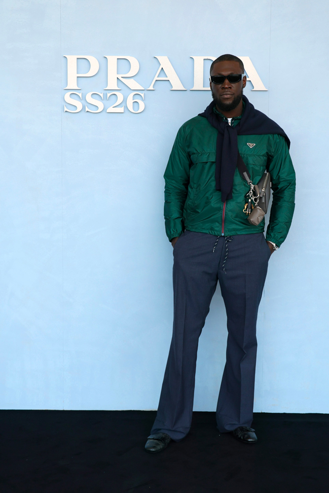 Deuxième événement de la Fashion Week homme de Milan, le défilé Prada réunissait une poignée de célébrités triées sur le volet. Sous un mercure estival de plus en plus haut, les acteurs et personnalités en vogue se sont ainsi donné rendez-vous pour découvrir la collection printemps-été 2026 de la maison de mode italienne. On a repéré Benedict Cumberbatch, Harris Dickinson, le rappeur Stormzy et le chanteur Mahmood.