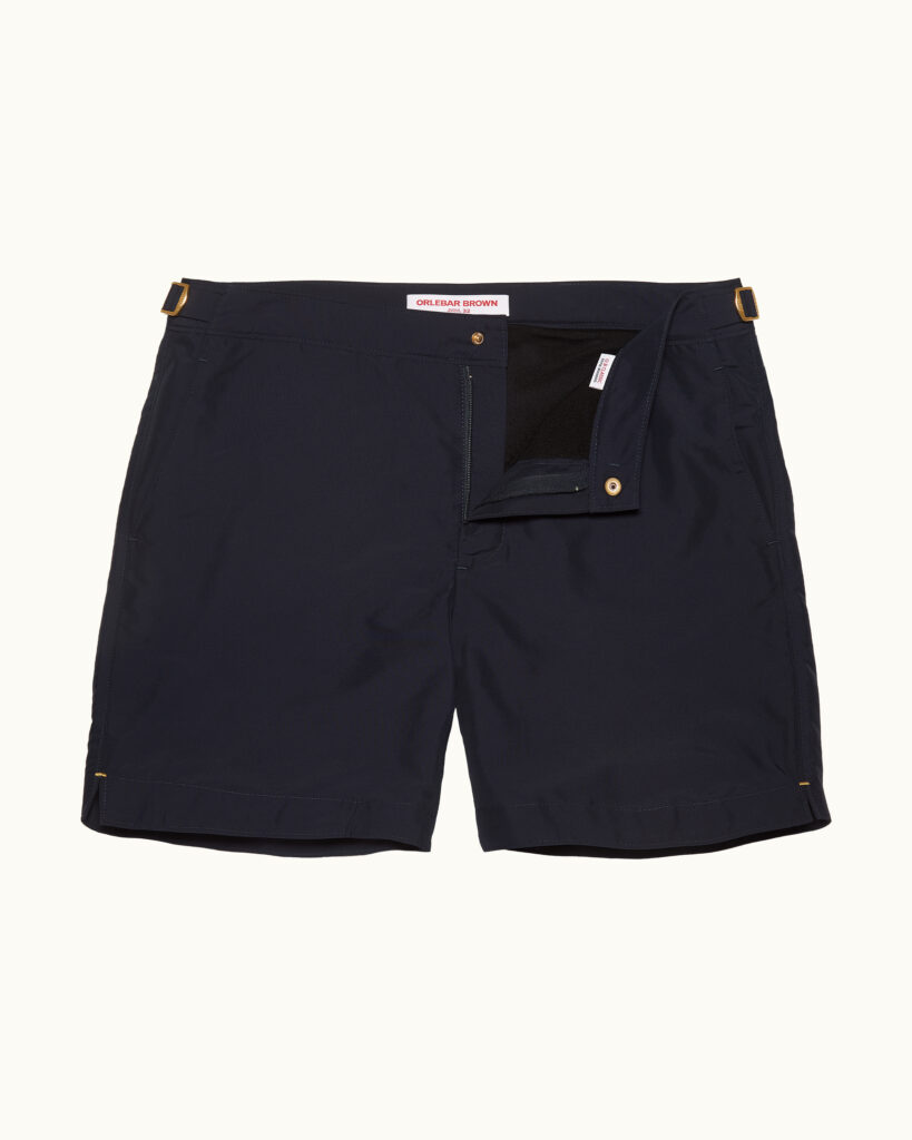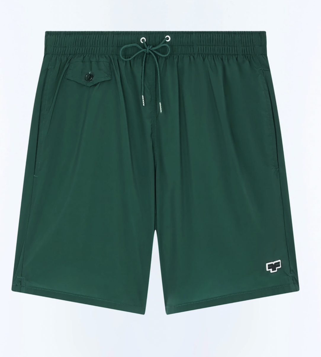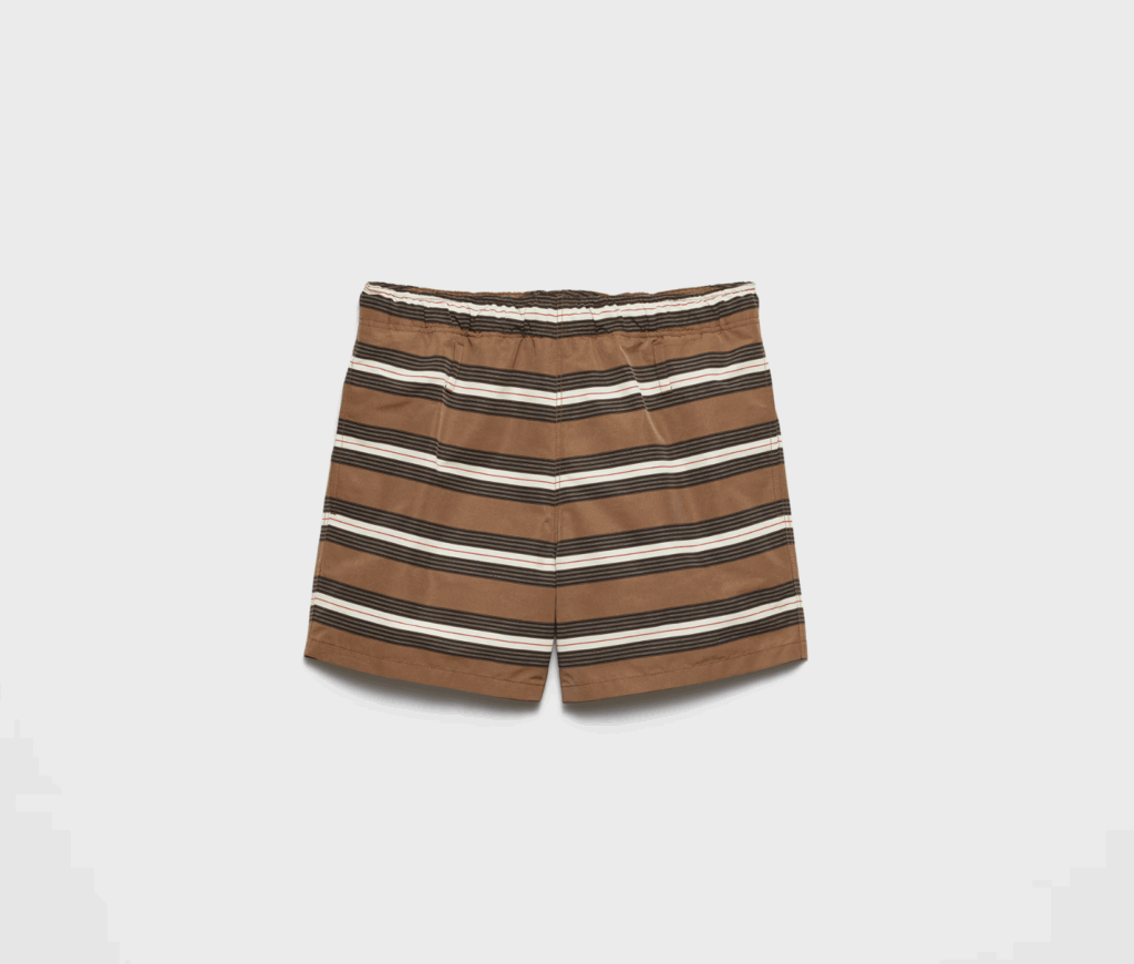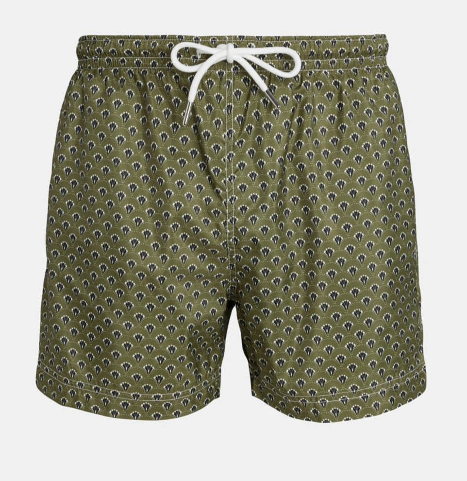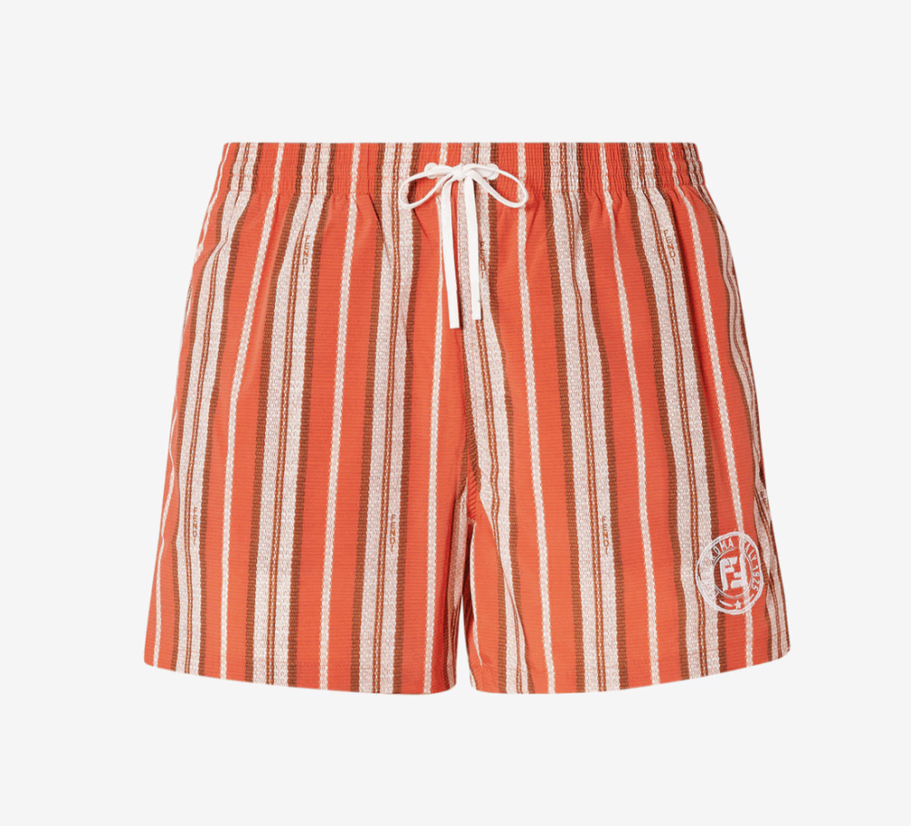 Sobre mais redoutablement efficace, le maillot de bain uni reste un intemporel du vestiaire estival. Vert, orange vif ou bleu éclatant : tout est une question de coupe et de matière. Le modèle Bulldog d’Orlebar Brown s’impose comme une référence chic, pensé comme un short habillé taillé pour l’eau. Chez Barbour, on mise sur une élégance décontractée à la française, tandis que Fursac et Schott déclinent l’uni dans des versions plus sportives. Une valeur sûre, à accessoiriser selon l’humeur du jour.