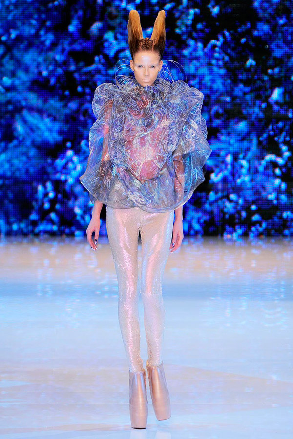 Il choque, il fascine. Ses vêtements ne cherchent pas à plaire mais à émouvoir. Ils disent la souffrance, le désir, la mort, la résurrection. Il crée pour les femmes puissantes, ambiguës, souveraines. Sa signature : des coupes architecturales, des corsets à armatures, des talons vertigineux, des références historiques mêlées à des codes futuristes.