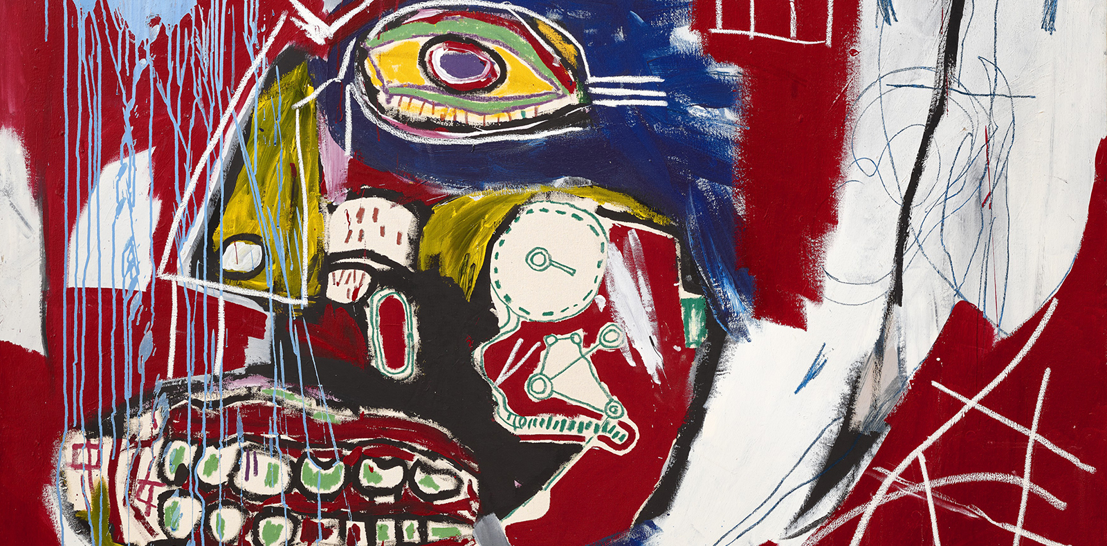 “Dos Cabezas” (1982) de Jean-Michel Basquiat. Acrylique et pastel sur toile. 152,4 x 152,4 x 2,54 cm. Estate of Jean-Michel Basquiat. Licensed by Artestar, New York/Photo : Robert McKeever