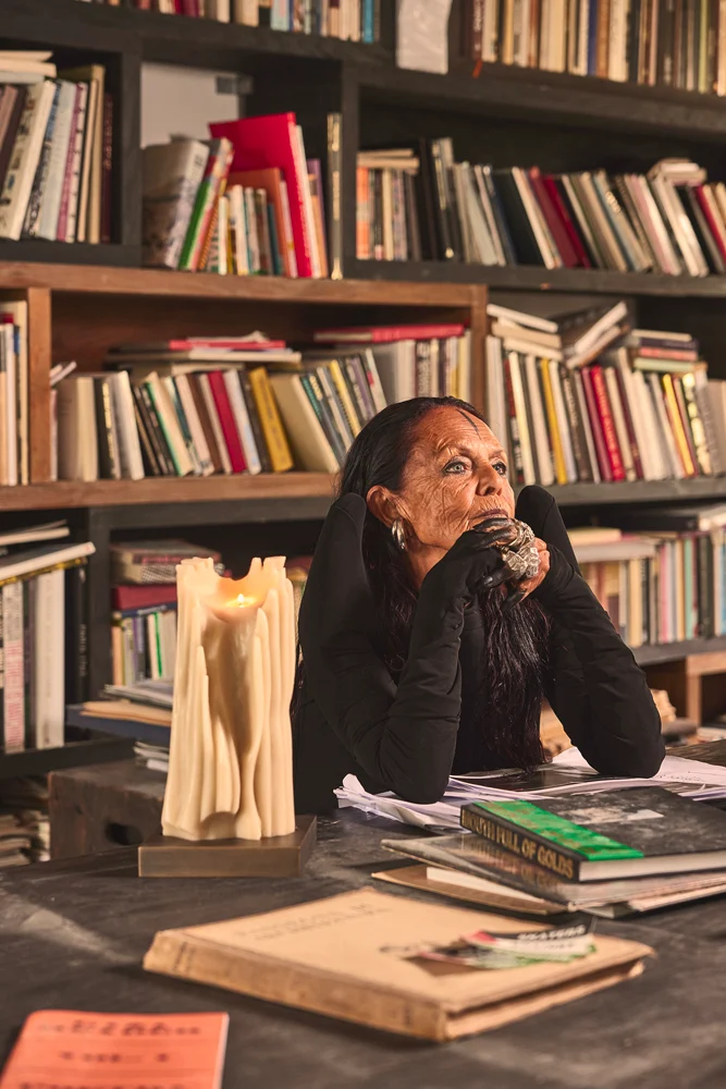 Au centre du parcours, un espace circulaire baptisé Sanctum invite à la contemplation. Des vidéos d’archives y tournent en boucle, montrant Rick Owens dessinant en silence, découpant un cuir, ajustant un pli. Une voix off — la sienne — murmure des fragments de textes philosophiques, empruntés à ArtaudNietzsche ou Pasolini. L’exposition ne documente pas une carrière : elle orchestre une cérémonie.